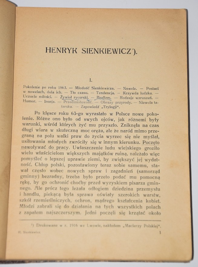 Tytuł: Henryk Sienkiewicz (Henryk Sienkiewicz, protoplasta Zagłoby, żywioł subjektywny w Trylogji Sienkiewicza, wojsko polskie u Sienkiewicza)