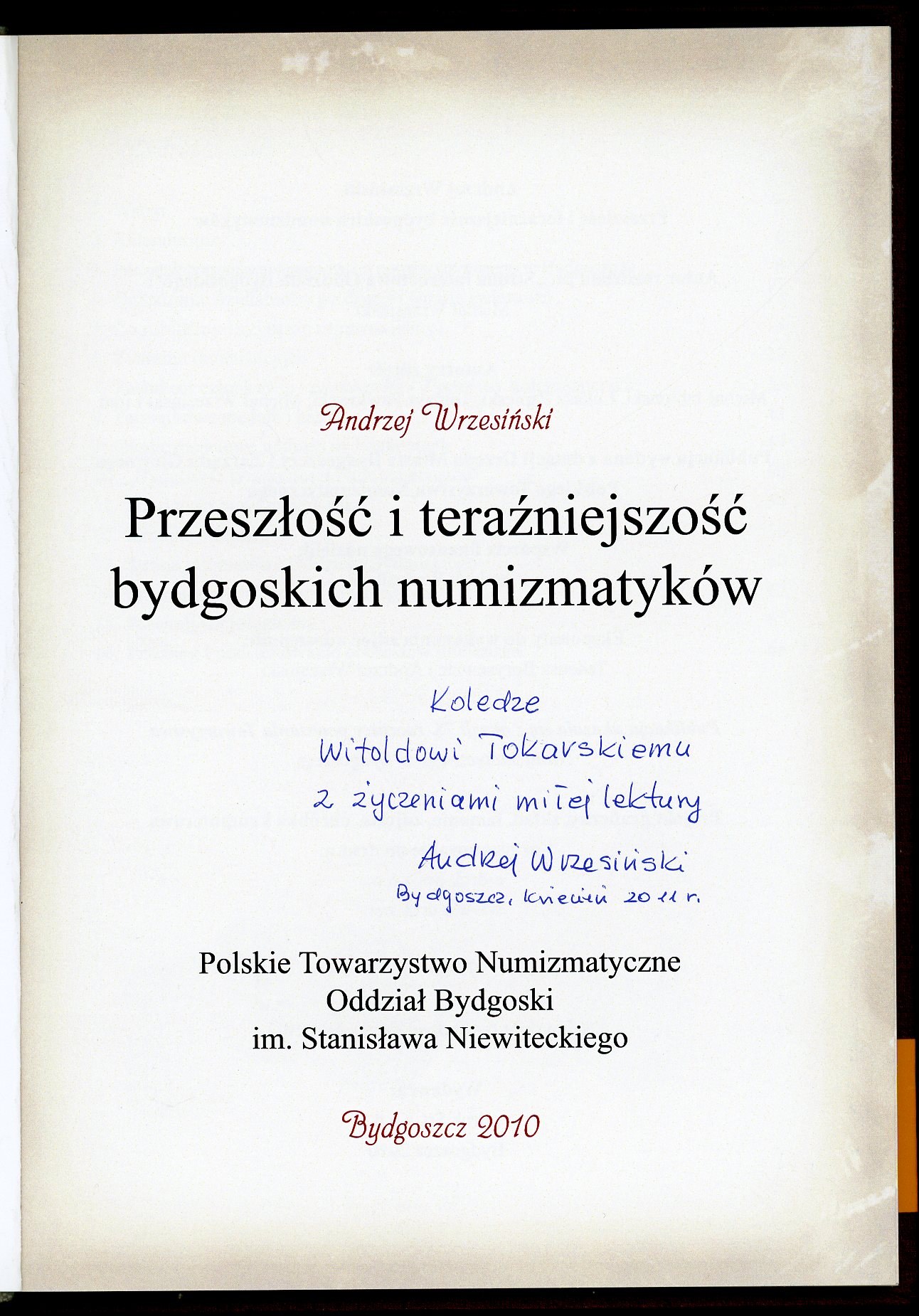 Andrzej Wrzesiński, Przeszłość i teraźniejszość bydgoskich numizmatyków