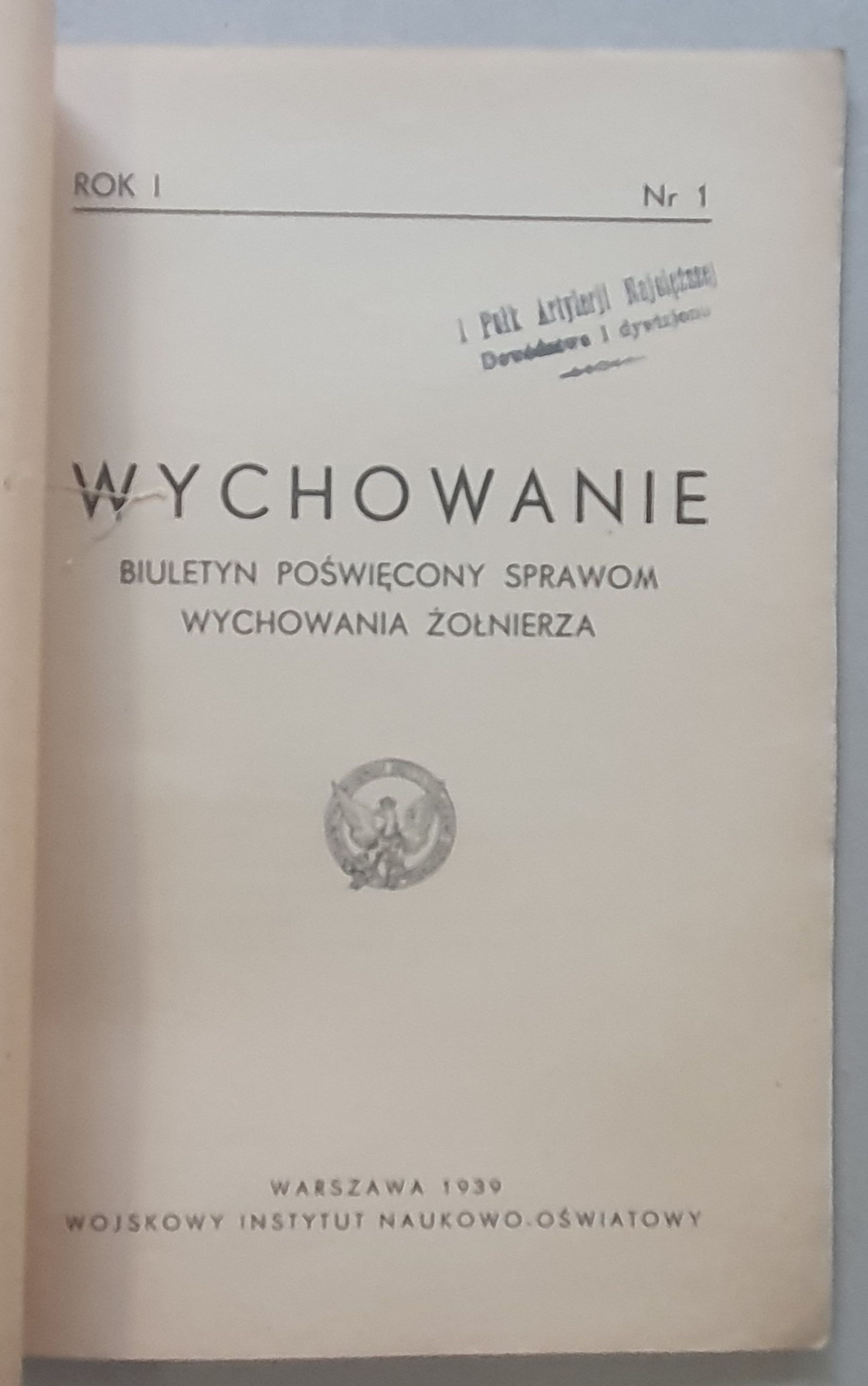 Wychowanie, Biuletyn poświęcony sprawom wychowania żołnierza. Rok I, Nr 1, Warszawa, 1939r.