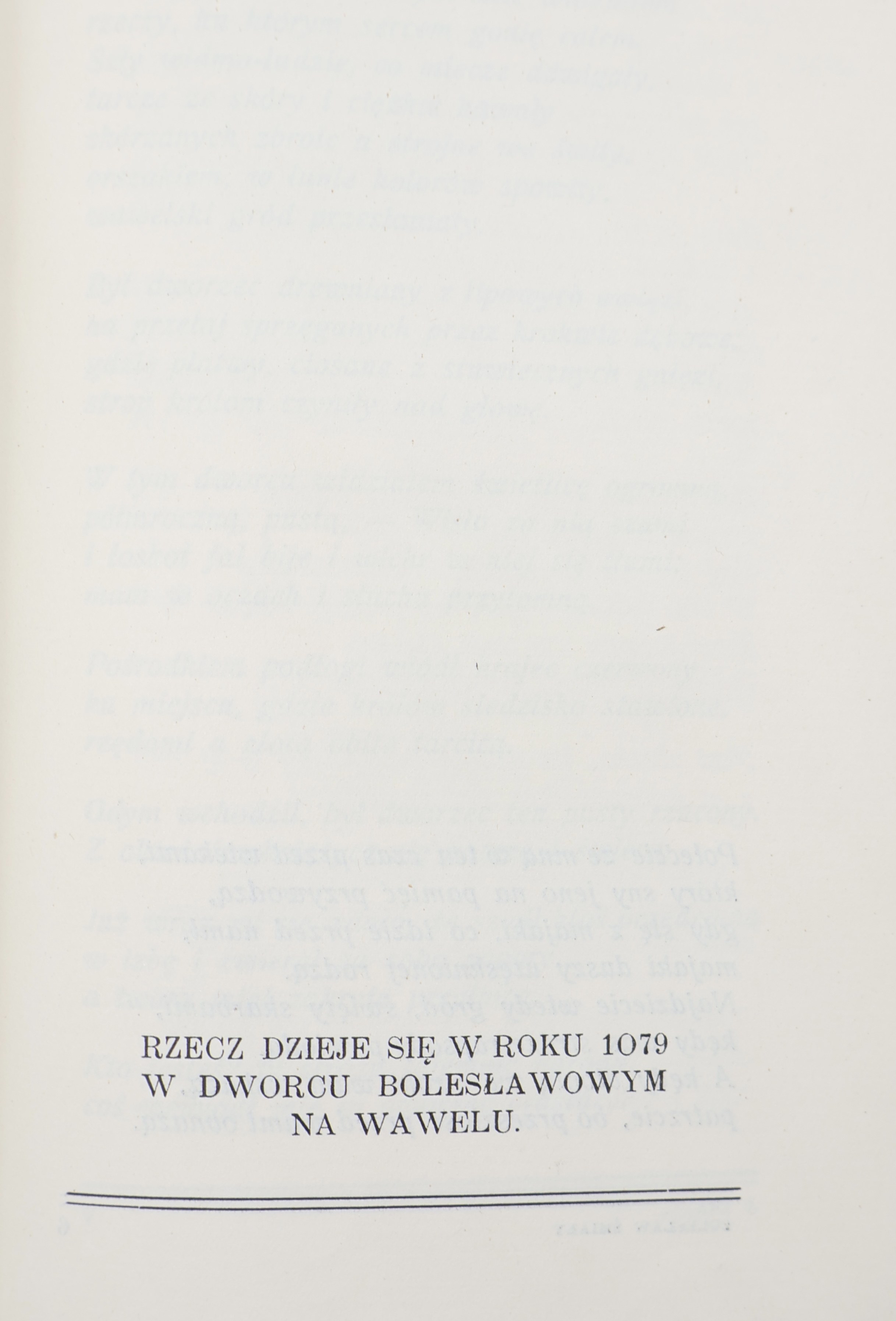 Pierwsze wydanie dramatu Stanisława Wyspiańskiego, jednego z najwybitniejszych twórców Młodej Polski. Utwór historyczny, oparty na wydarzeniach z czasów Bolesława II Śmiałego, łączy dramat polityczny z refleksją nad władzą, odpowiedzialnością i losem narodu.