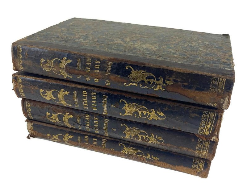 Wykład Wiary Katolickiej albo Teologija Dogmatyczna i Moralna. Tom I-IV - X. Ambroży Guillois, książki wydane w latach 1857-1858 w Warszawie nakładem i drukiem J. Glucksberga