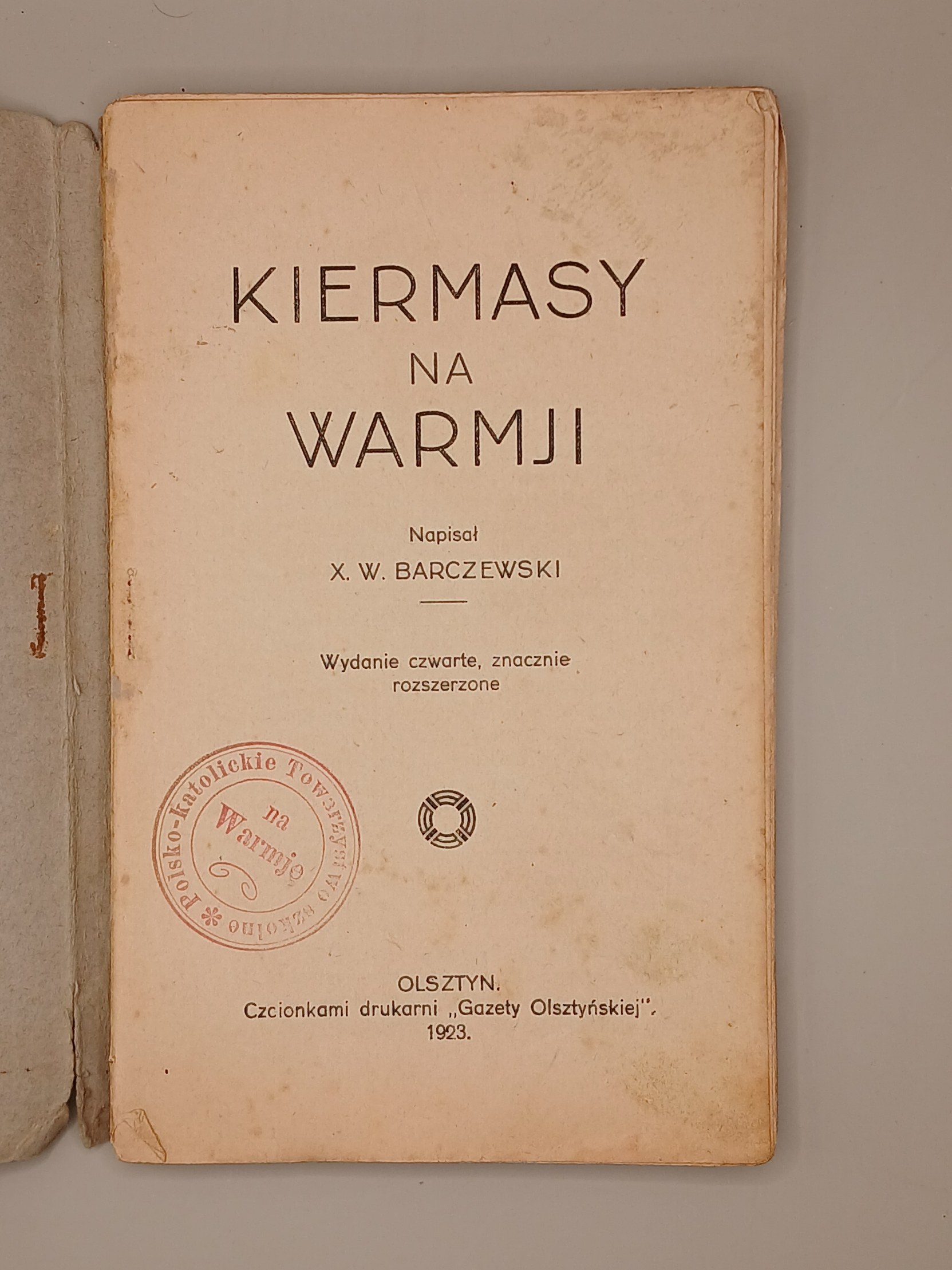X.Walenty Barczewski. Kiermasy na Warmji. Wydanie czwarte, znacznie rozszerzone. Olsztyn 1923. Czcionkami drukarni „Gazety Olsztyńskiej”,