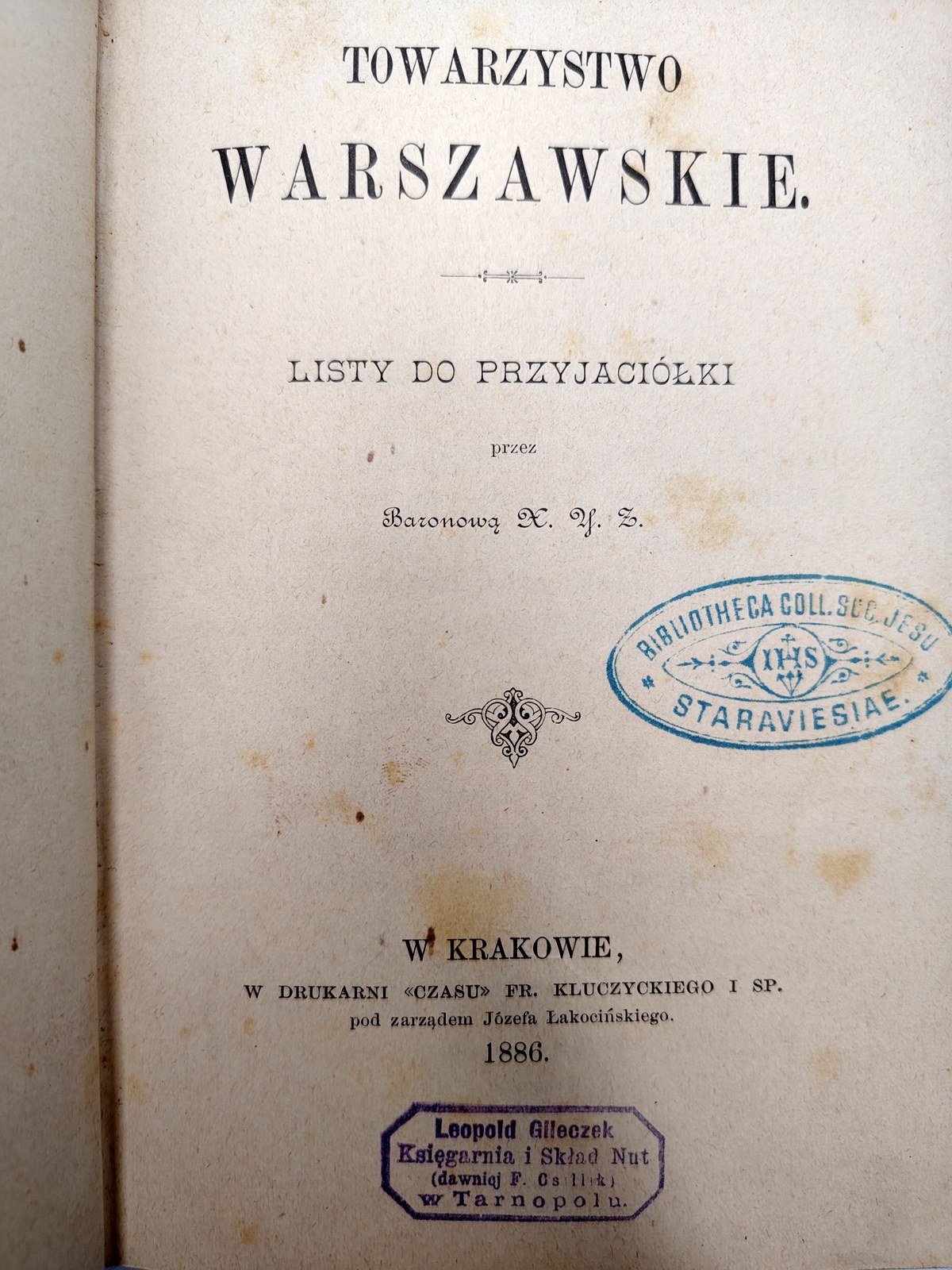 Zaleski Antoni - Towarzystwo Warszawskie - Listy do przyjaciółki, Kraków 1886