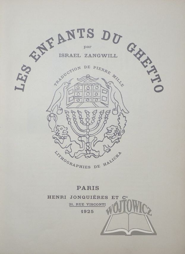Les Enfants du Ghetto. Tradcution de Pierre Mille. Litographies de Halicka. Paris 1925. Henri Janquieres Cie. 4, s. [4], 223, [6], 22 litografie na osobn. tabl., opr. sk. introligat., okł. brosz. oryg...
