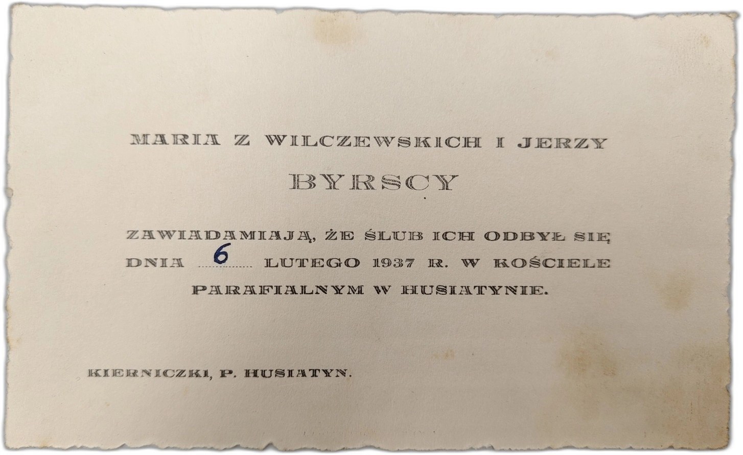 Zaproszenie na ślub - Husiatyn - 1937 rok [ kresy ]