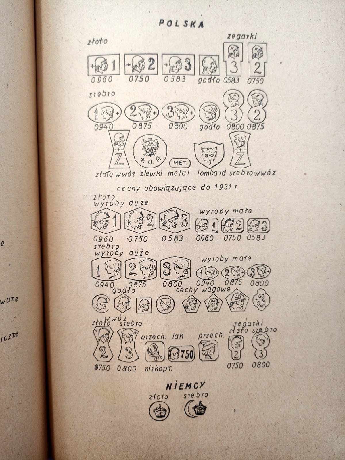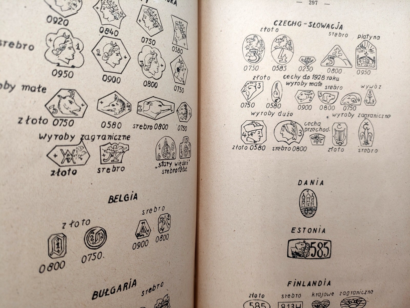 Podręcznik dla złotników srebrników jubilerów, rytowników oraz dla Państwowych Urzędów Probierczych - zawiera XXIV tablice 26 rycin, 267 wzorów rysunkowych cech probierczych państw europejskich.