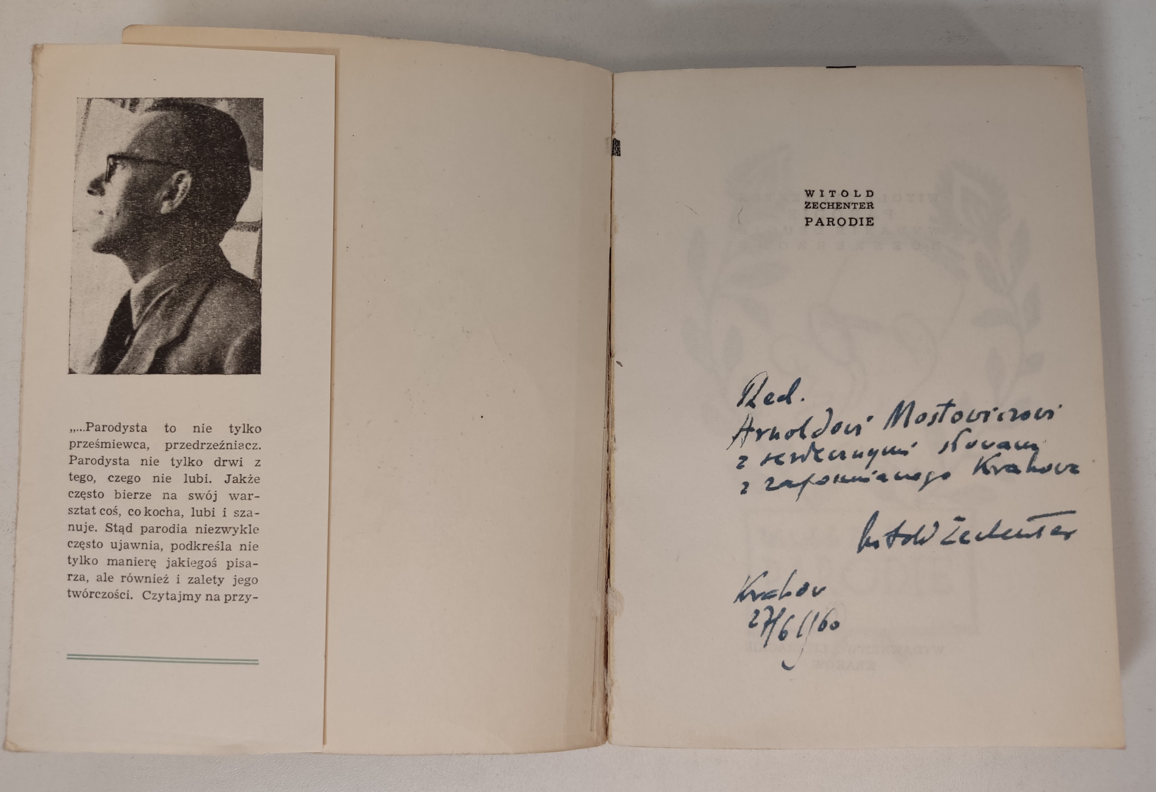 Ilustracje i okładkę projektował A. Stopka. Wydawnictwo Literackie, Kraków 1960. Wym. 16,7x12,3; stron 292. Oprawa broszurowa w obwolucie(pęknięcie między ostatnią kartą a tylną okł., przybrudzenia, otarcia krawędzi+postrzępienia, nieznaczne zgięcia okł. broszurowej). Odręczna dedykacja dla Arnolda Mostowicza od Autora.