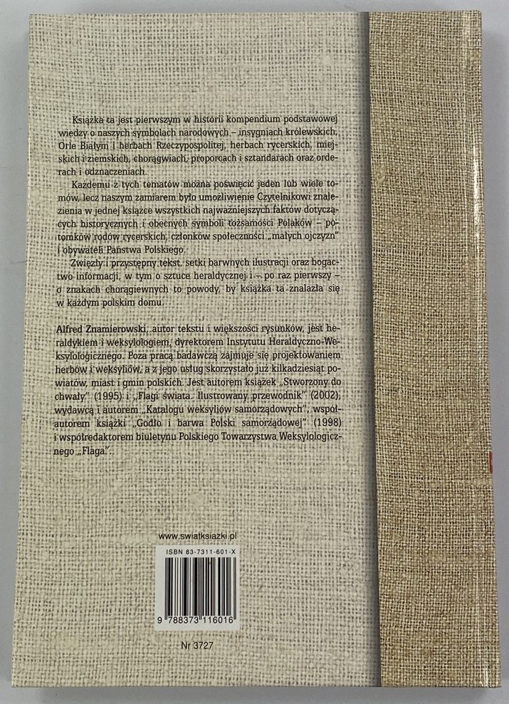 W książce tej czytelnik znajdzie wszystkie najważniejsze fakty dotyczące historycznych i obecnych symboli tożsamości Polaków. Insygnia królewskie, Orzeł Biały i herby Rzeczypospolitej, herby rycerskie, miejskie i ziemskie, chorągwie, proporce i sztandary oraz ordery i odznaczenia opisane są sposób niezwykle rzetelny, udokumentowane barwnymi ilustracjami i fotografiami. Niezwykle opisowy i barwny sposób przedstawienia naszych symboli narodowych czyni tę książkę niepowtarzalnym kompendium wiedzy.