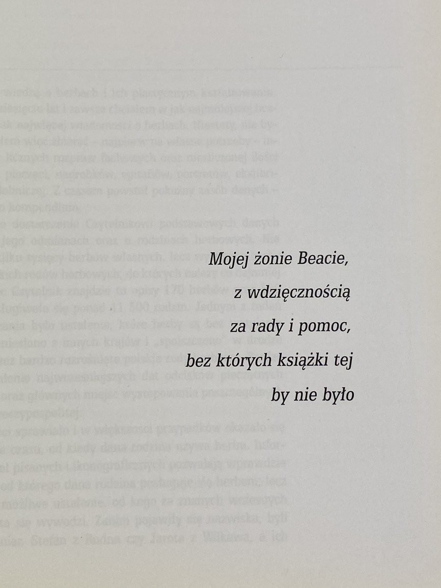 Czytelnik znajdzie w tej książce opisy blisko 170 herbów (i ich 550 odmian) ilustrowanych kolorowymi podobiznami. Ważną częścią książki jest spis ponad 11 500 rodzin herbownych. Może on dopomóc tym, którzy szukają swych korzeni, a z opowieści rodzinnych wiedzą, jaka była nazwa herbu, wygląd godła lub brzmienie zawołania.