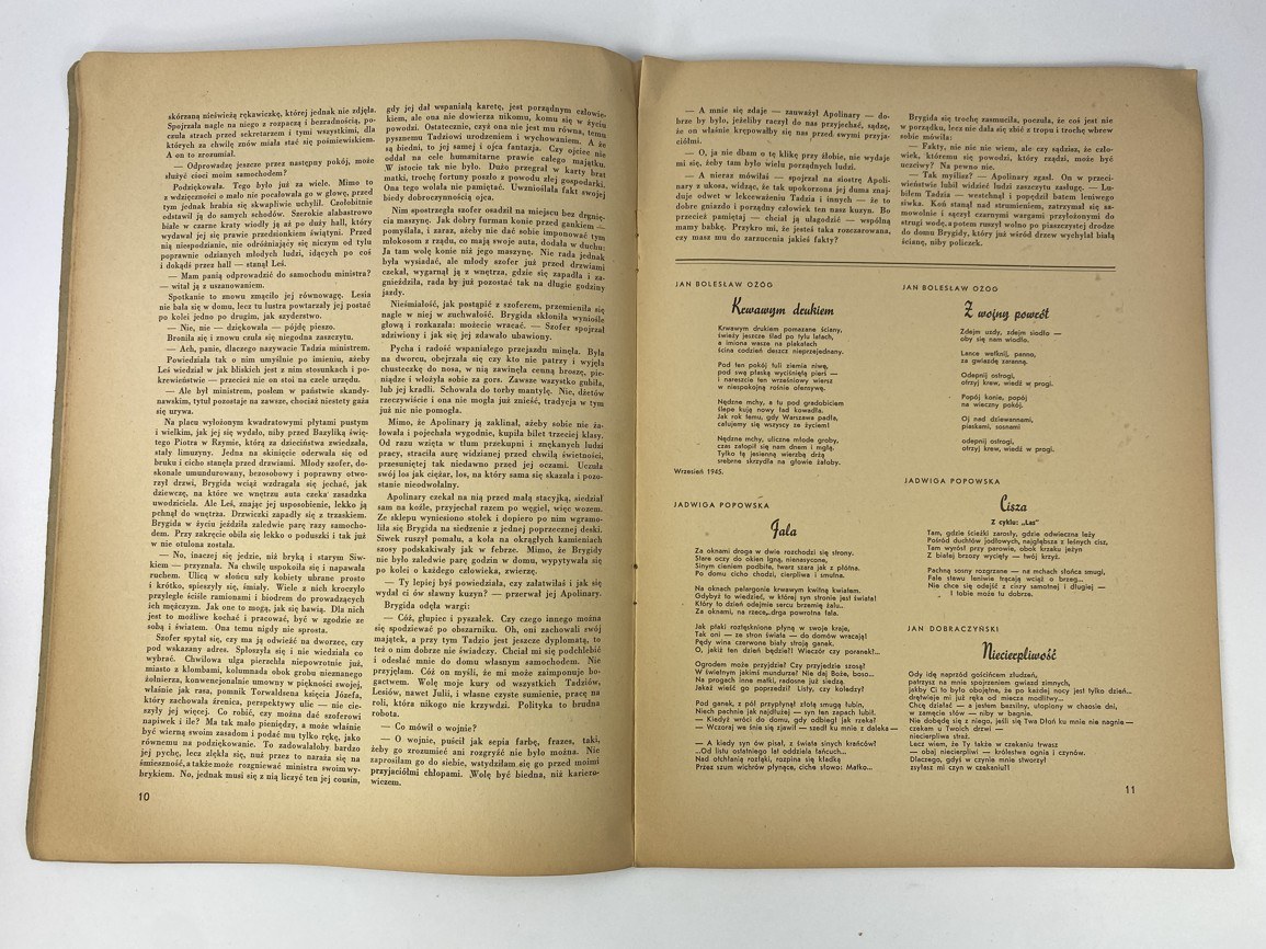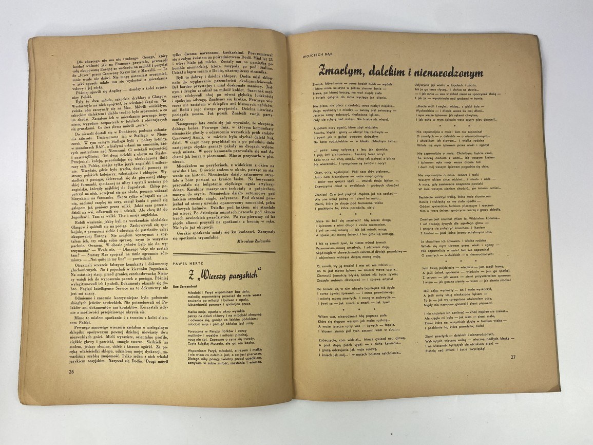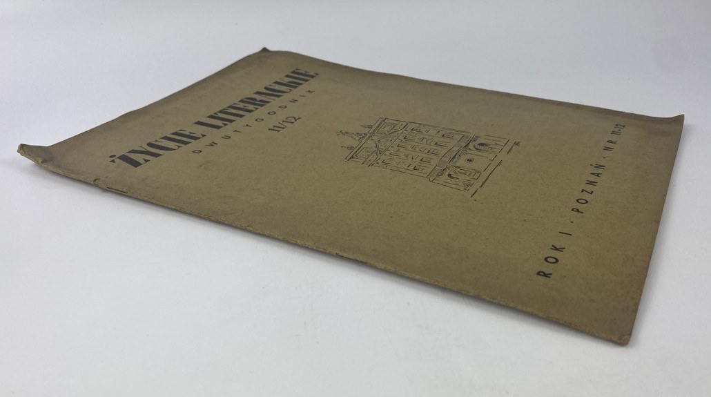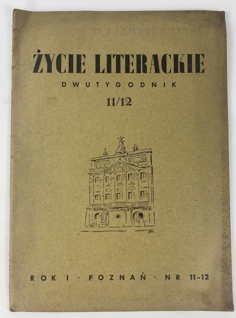 Życie Literackie. Dwutygodnik. Rok I. Nr 11/12, Poznań 1945, s. 28, wymiary 24 x 33 cm. Okładka broszurowa, wydawnicza. Zabrudzenia, niewielkie otarcia okładki.