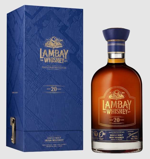 Lambay Single Malt Irish Whiskey to luksusowa, 20-letnia Whiskey z limitowanej edycji. Ten najwyższej klasy destylat był starannie starzony w beczkach po bourbonie przez 18 lat, a następnie finiszował w beczkach po koniaku z francuskiego dębu Camus, pod czujnym okiem Master Blendera Lambay, Yonaela Bernarda. Woda ze źródła Lambay's Trinity Well dodawana jest przed butelkowaniem. Noty degustacyjne: Zapach: Ciepła wanilia, gładki dąb, dojrzałe śliwki, zielone jabłka, nutki jodu. Aromatyczny, ale delikatny i przyjemny zapach morskiej soli i jodu, z bogatą wanilią i nutą przypraw oraz zielonych owoców. Smak: Egzotyczne przyprawy, takie jak szafran, imbir i pieprz, ze słodkimi nutami migdałów, miodu i orzechów włoskich. Whisky, która odzwierciedla prawdziwe morskie wpływy wyspy, jod i sól z gładkim i przyjemnym pełnym odczuciem w ustach. Owoce śliwki i jabłka są dobrze zbalansowane z tym koniakowym wykończeniem, utrzymujące się nuty przyprawowe imbiru tworzą długi finisz zielonych owoców i przypraw. Finisz: Wyczuwalne sól, pieprz, długotrwała słodycz z dobrze zbalansowanym dębem, w ustach utrzymuje się elegancki finisz z nutami miodu i imbiru. Szacowana cena: 1500-2000 zł
