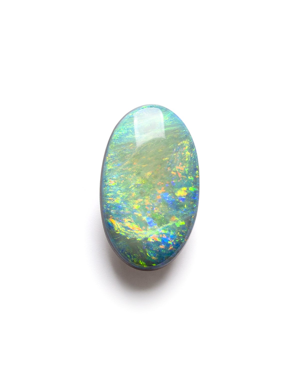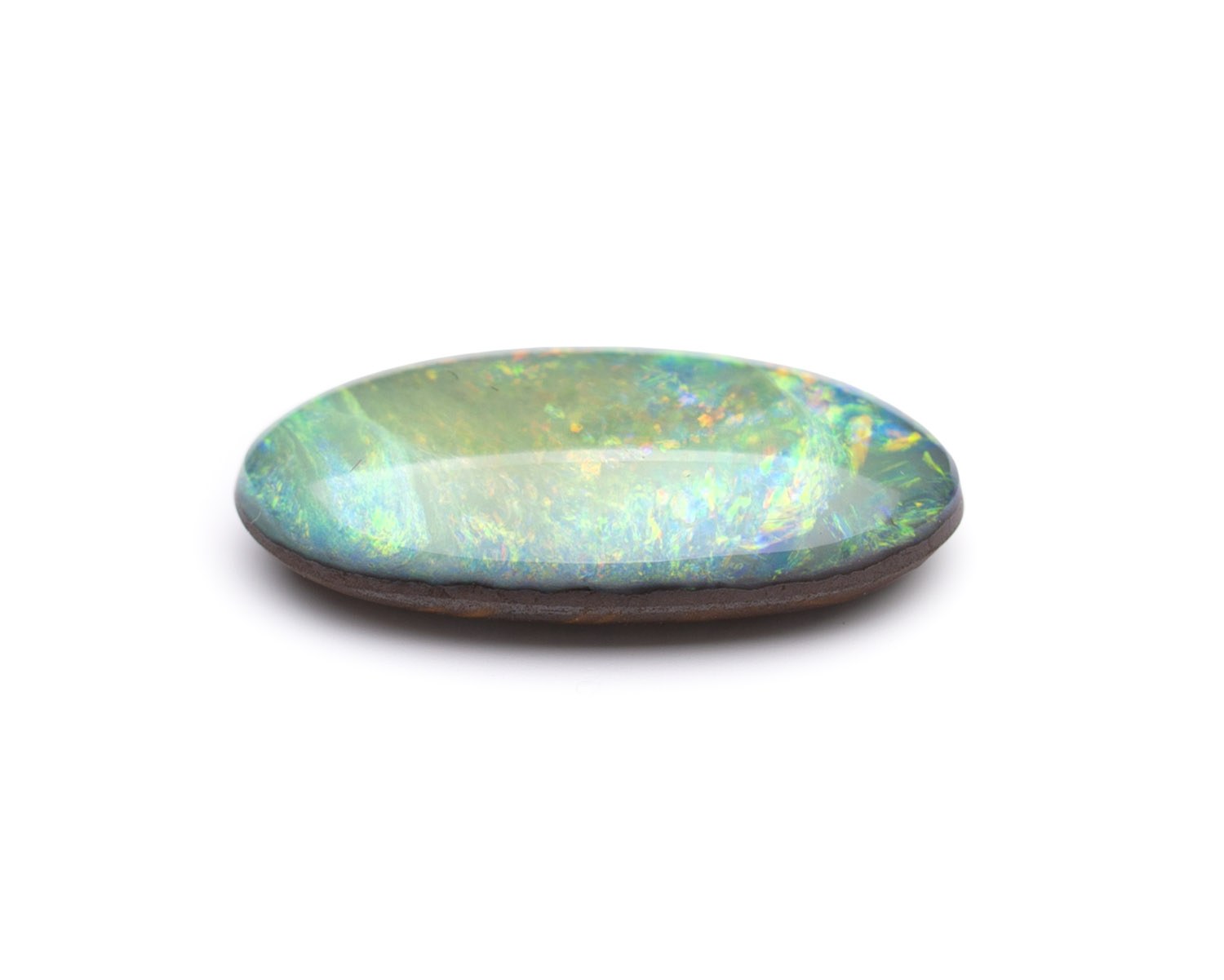 1 opal australijski boulder 5,35 ct (Queensland) w szlifie owalny kaboszon, opalizacja: pomarańczowa, zielona, żółta, niebieska, wym.: 16,85 x 10,20 x 4,31 mm