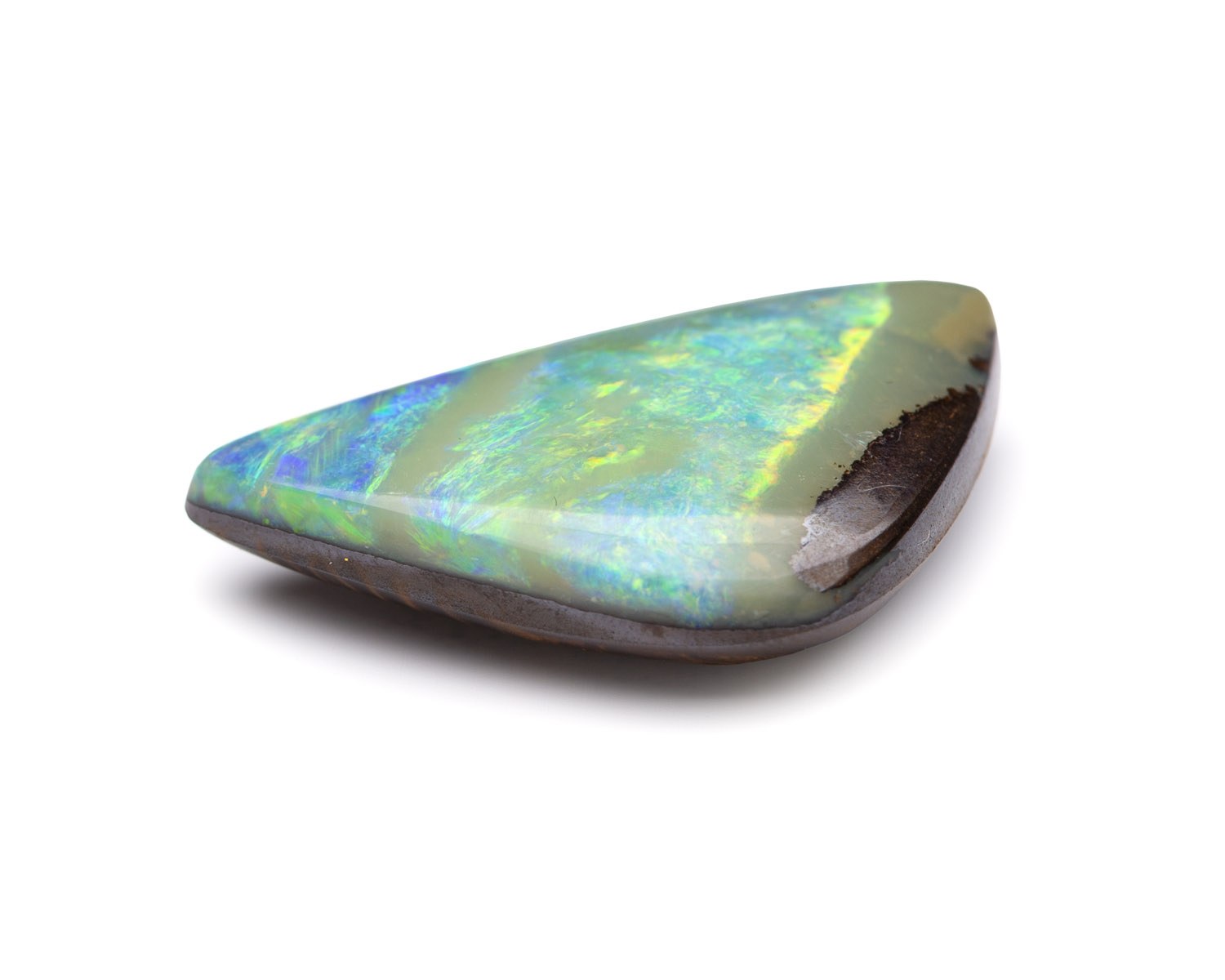 1 opal australijski boulder (Queensland) 23,16 ct w szlifie nieregularny kaboszon, opalizacja: czerwona, pomarańczowa, żółta, zielona, niebieska, fioletowa, wym.: 28,77 x 17,19 x 6,92 mm