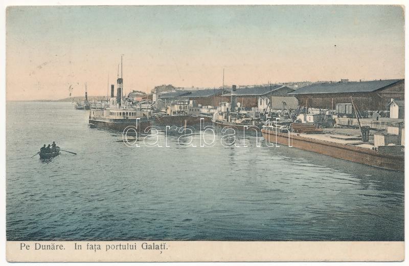 Galati, Galatz; Pe Dunare, In fata portului / Danube port, steamships (EK)