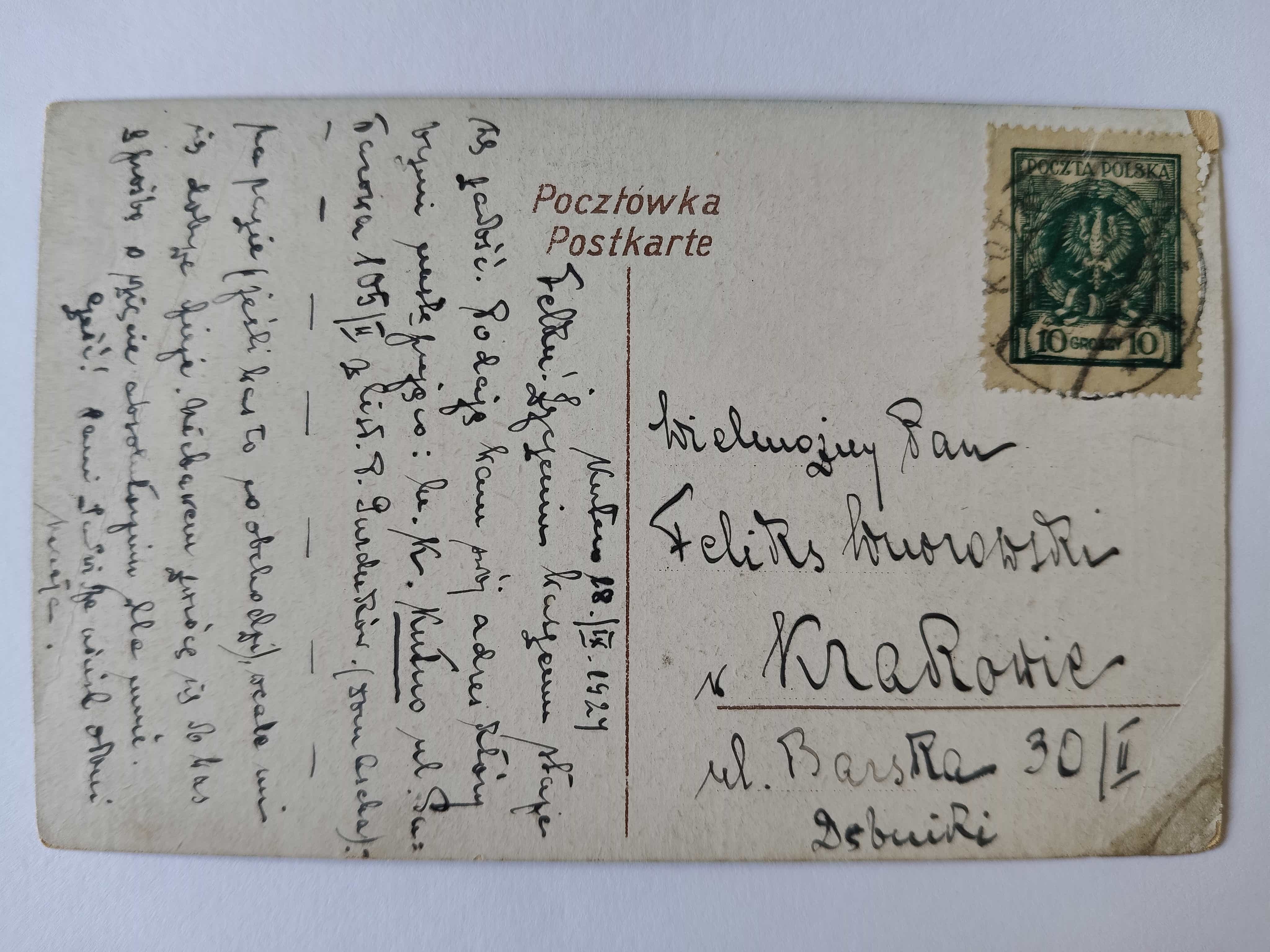 Przedmiotem licytacji jest oryginalna pocztówka. Stan zachowania oraz obieg widoczny na fotografiach, zgięty narożnik, brak wad ukrytych.