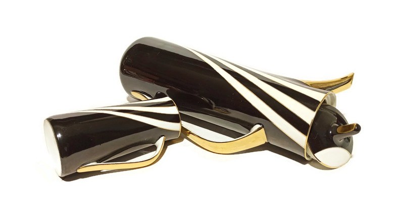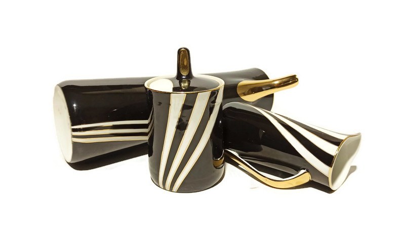 stan bardzo dobry, bez uszkodzeń, mała rysa na dzbanku, złocenia bez wytarć, bardzo ładny zestaw
