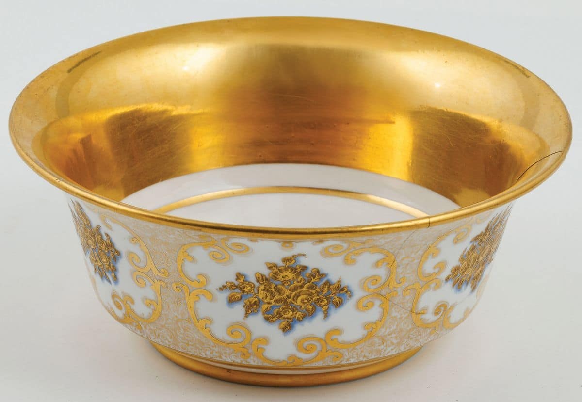 Porcelana, kobalt podszkliwny, złocenie, wys. 8, sr. 20 cm Sygnowany kobaltem podszkliwnie: monogram Mikołaja I Stan: klejone pęknięcie Cena wywoławcza 700 Estymacja 1200 - 1500 zapytaj o obiekt
