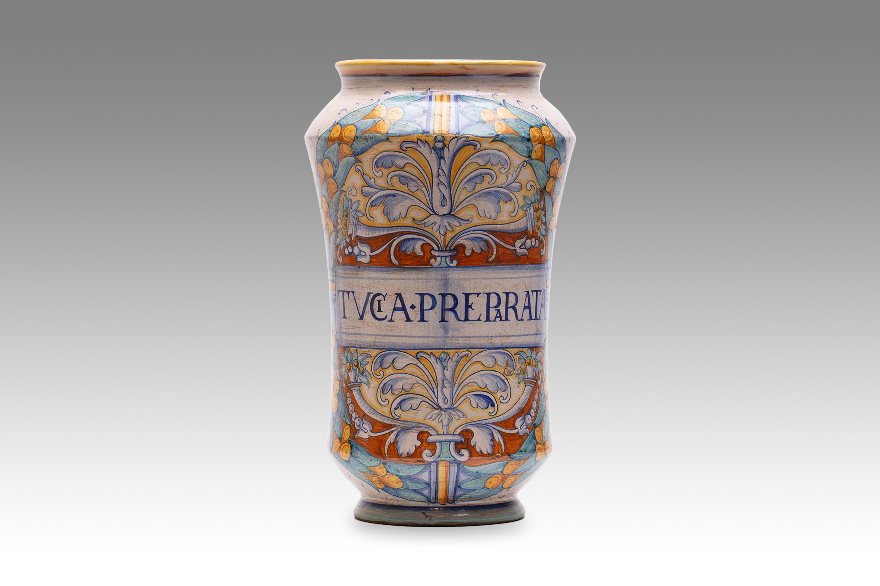 XX sec | hauteur: 29 cm | region: Deruta | pays: Italie | condition: restaurant | provence: musee de la ferme privee | Ceramique en majolique d'Albarello