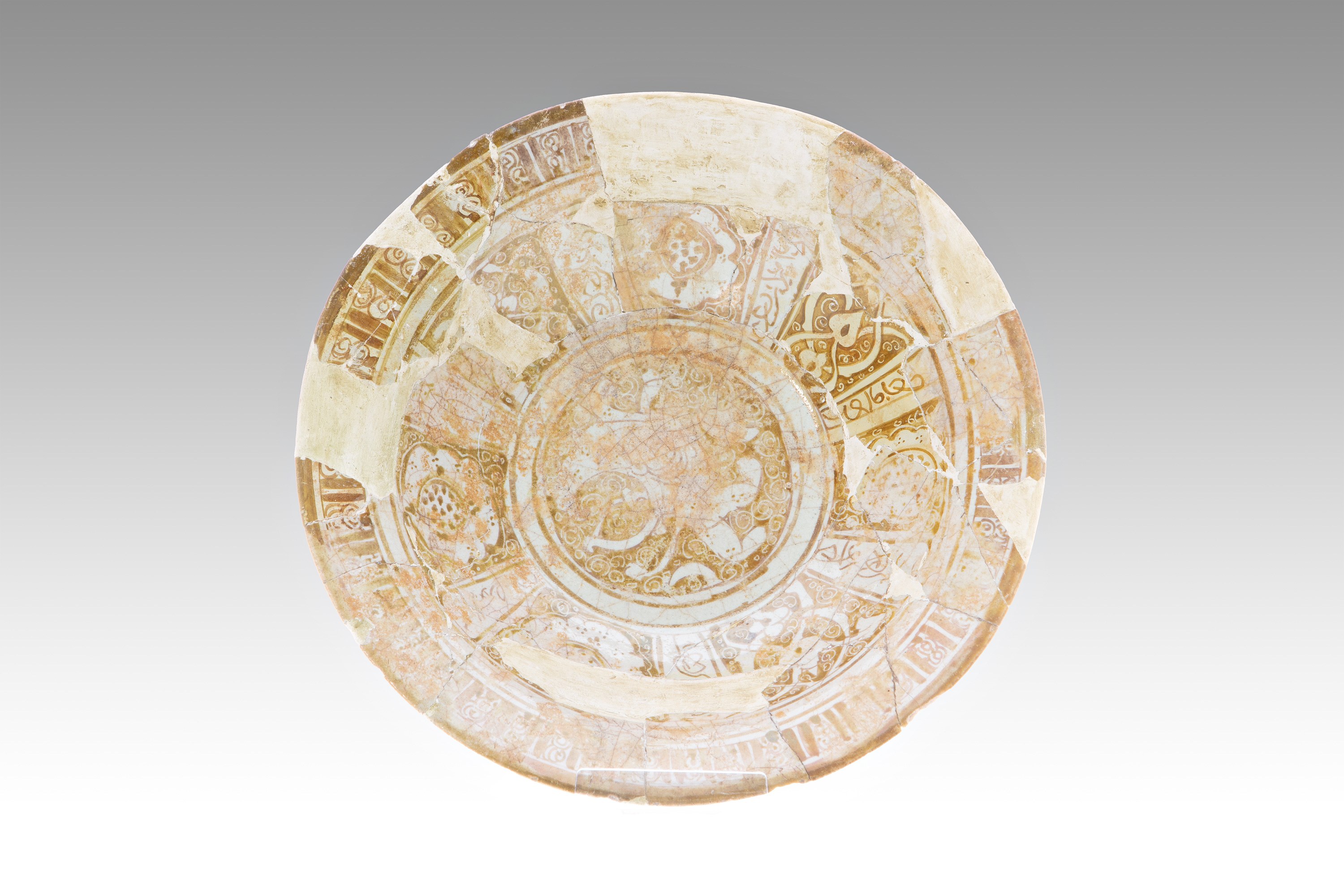 12th century | ceramics with metallic glaze (chandelier), plate decorated with ornaments and calligraphy | 23.5 x 6.5 cm (diameter x height)