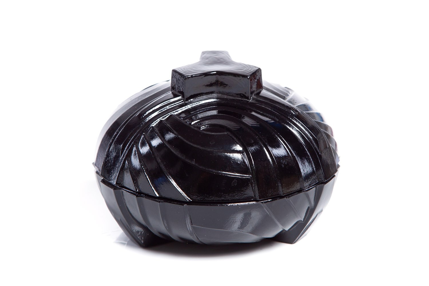 szkło hialitowe, prasowane; wys. 8,5 cm, średn. 12,5 cm