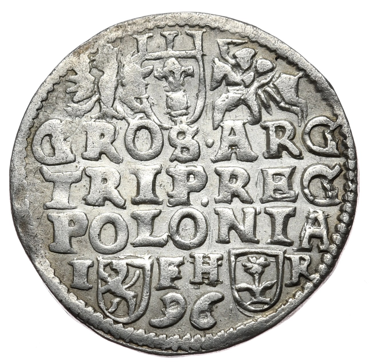 Bardzo ładnie zachowany trojak , lekko niedobity. Odmiana z herbem Lewart i inicjałami IF podskarbiego Jana Firleja oraz ze znakiem róży