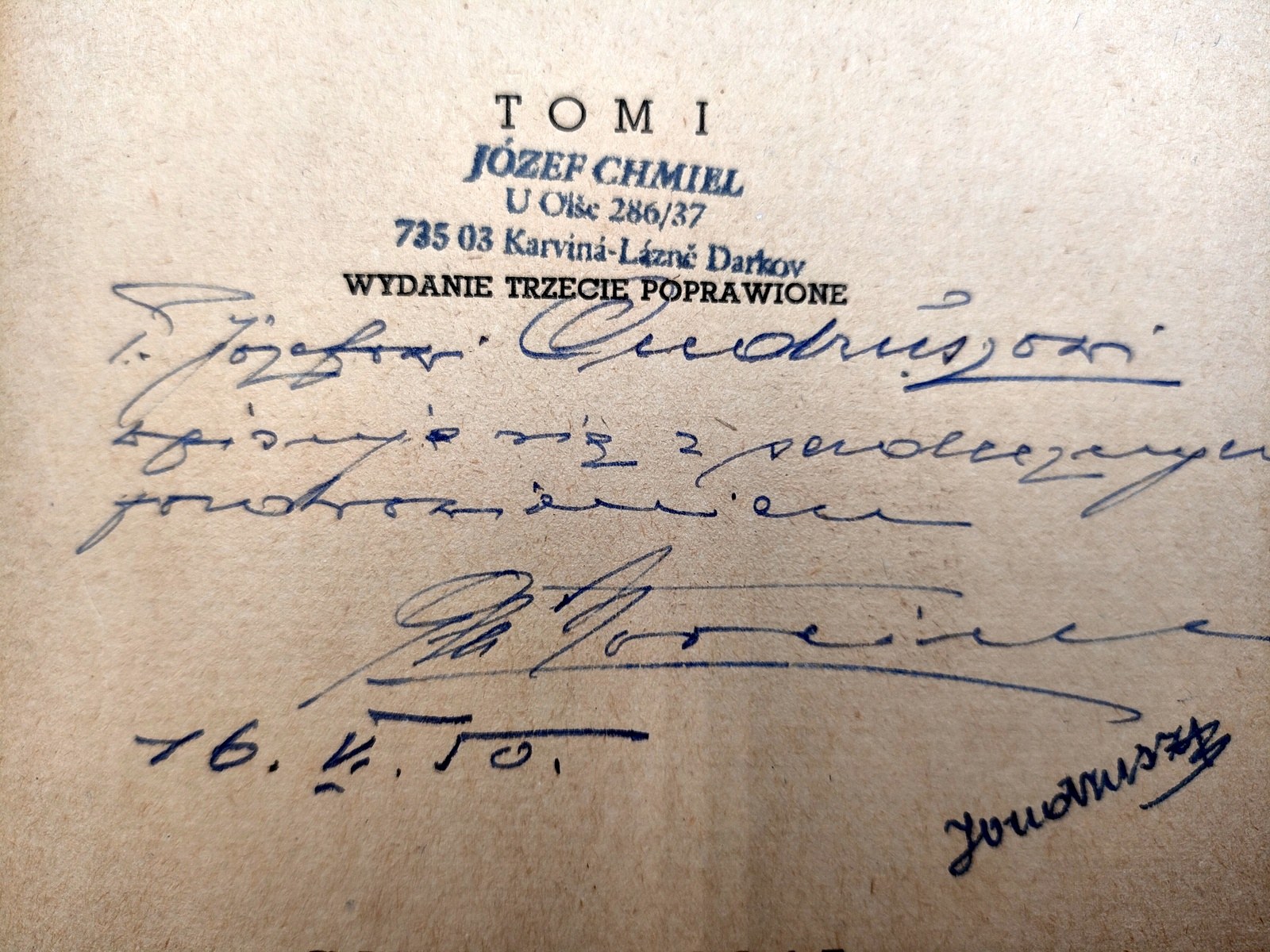 Autograf autora pod zdjęciem poprzedzającym stronę tytułową tomu pierwszego,
