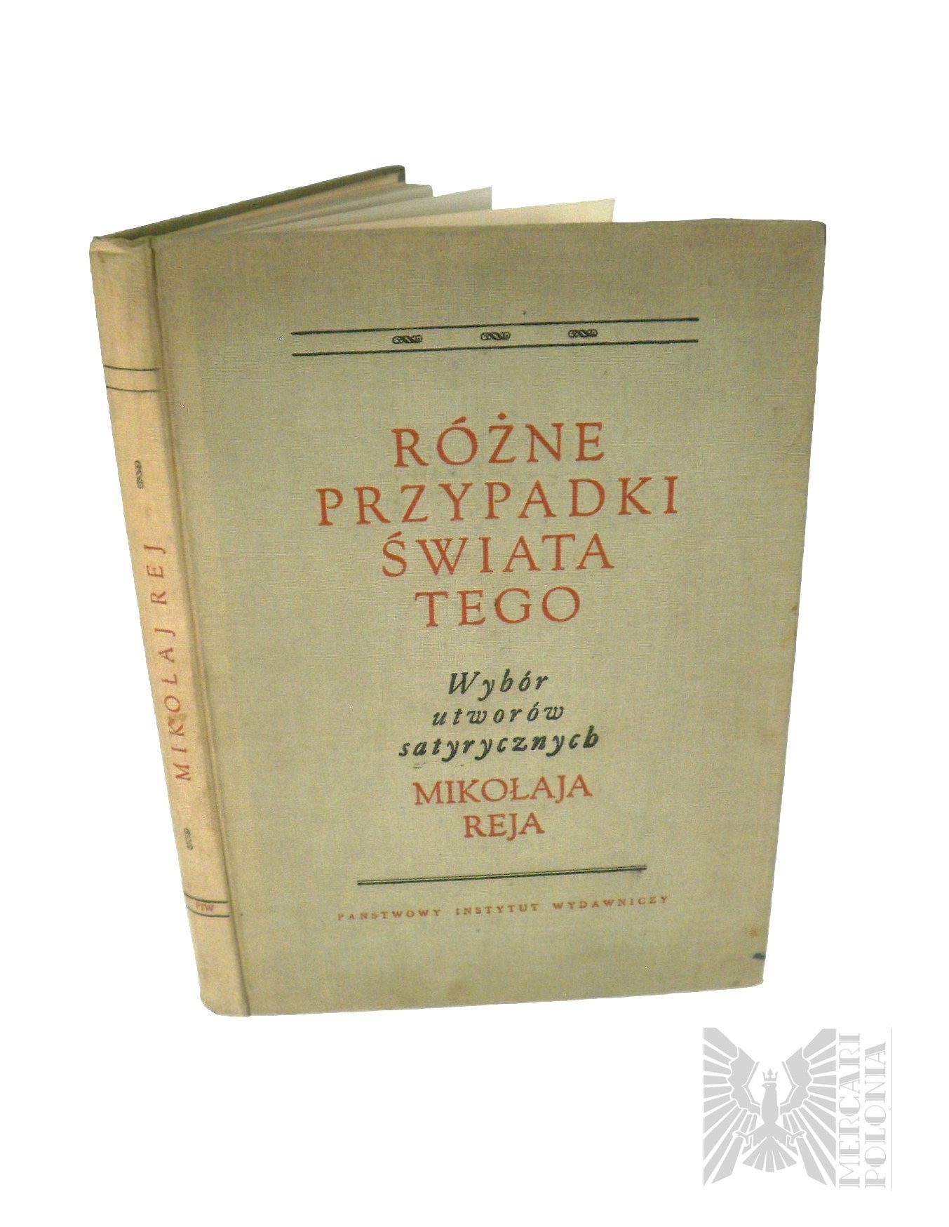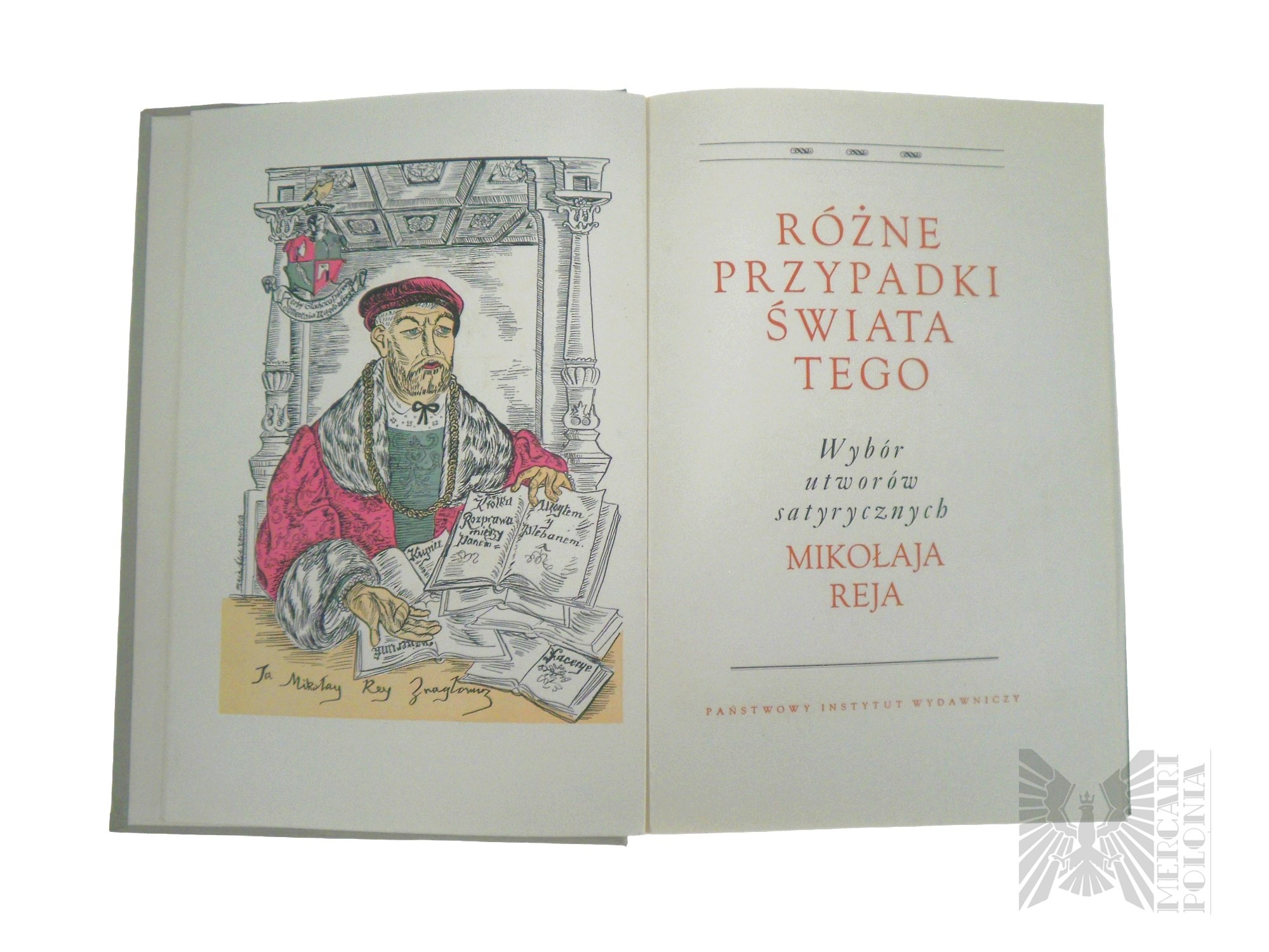 PRL, Warszawa, 1953 r. - Książka “Różne Przypadki Świata Tego : Wybór Utworów Satyrycznych Mikołaja Reja”, Wybór i Oprac. Antonina Jelicz, Ilustracje Maja Berezowska - Państwowy Instytut Wydawniczy