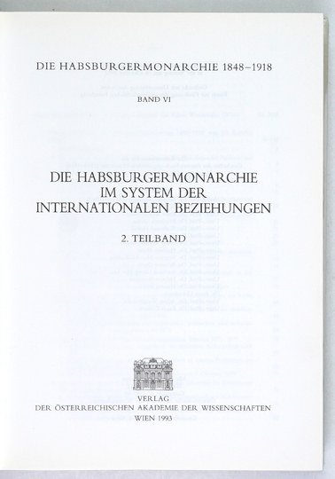 Die HABSBURGERMONARCHIE 1848-1918. Bd. 6/2: Habsburgermonarchie im System der internationalen Beziehungen. Wien 1993. Verlag der Österreichischen Akademie der Wissenschaften. 8, s. XIII, [1], 686, [4]. opr. oryg. pł., obw.