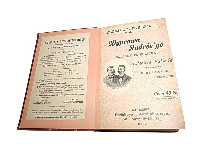 "Dnia 11 lipca 1897 roku w niedzielę po południu, balon Oernen opuszczał port Virgo na Szpicbergu, unosząc w swojej łódce pp. Andreego, Strindberga i Fraenkla, odważnych podróżników, udających się na podbój bieguna północnego" - ze wstępu.