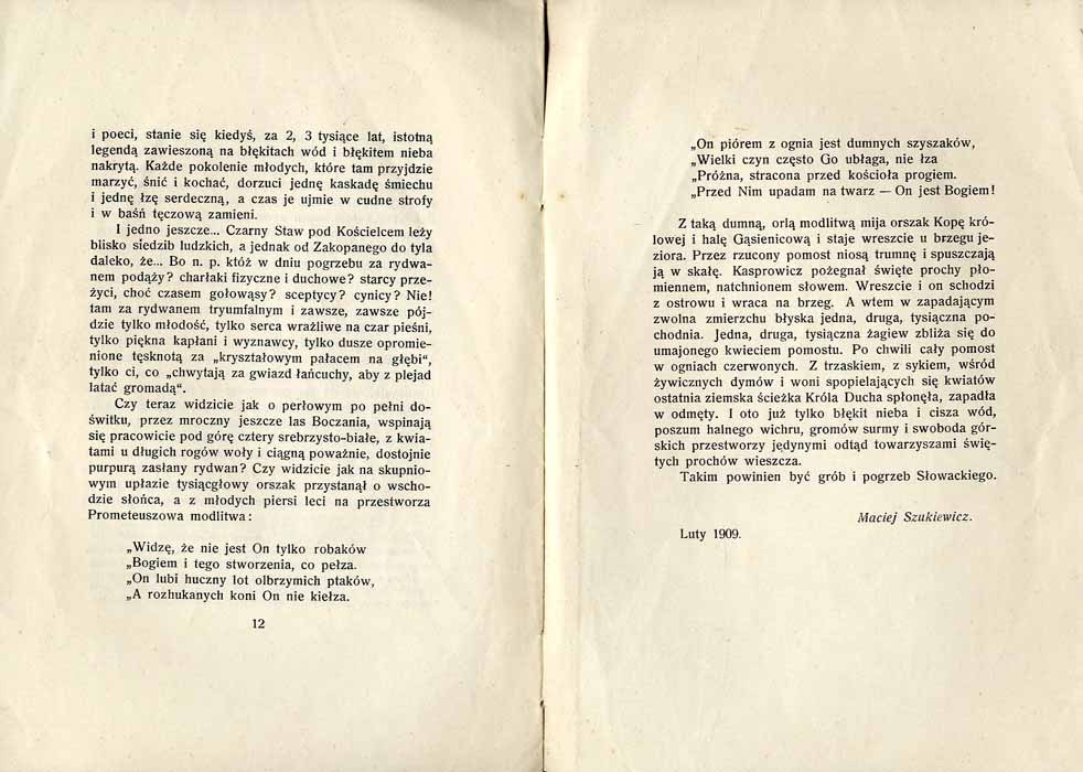 Uwagi: Autorstwo podane na końcu tekstu. Opracowanie nt. kwestii sprowadzenia zwłok poety do kraju i wyboru miejsca jego pochówku. "Czysty dochód przeznaczony na cele Akademickiego Komitetu Sprowadzenia Zwłok J. Słowackiego" (cegiełka)