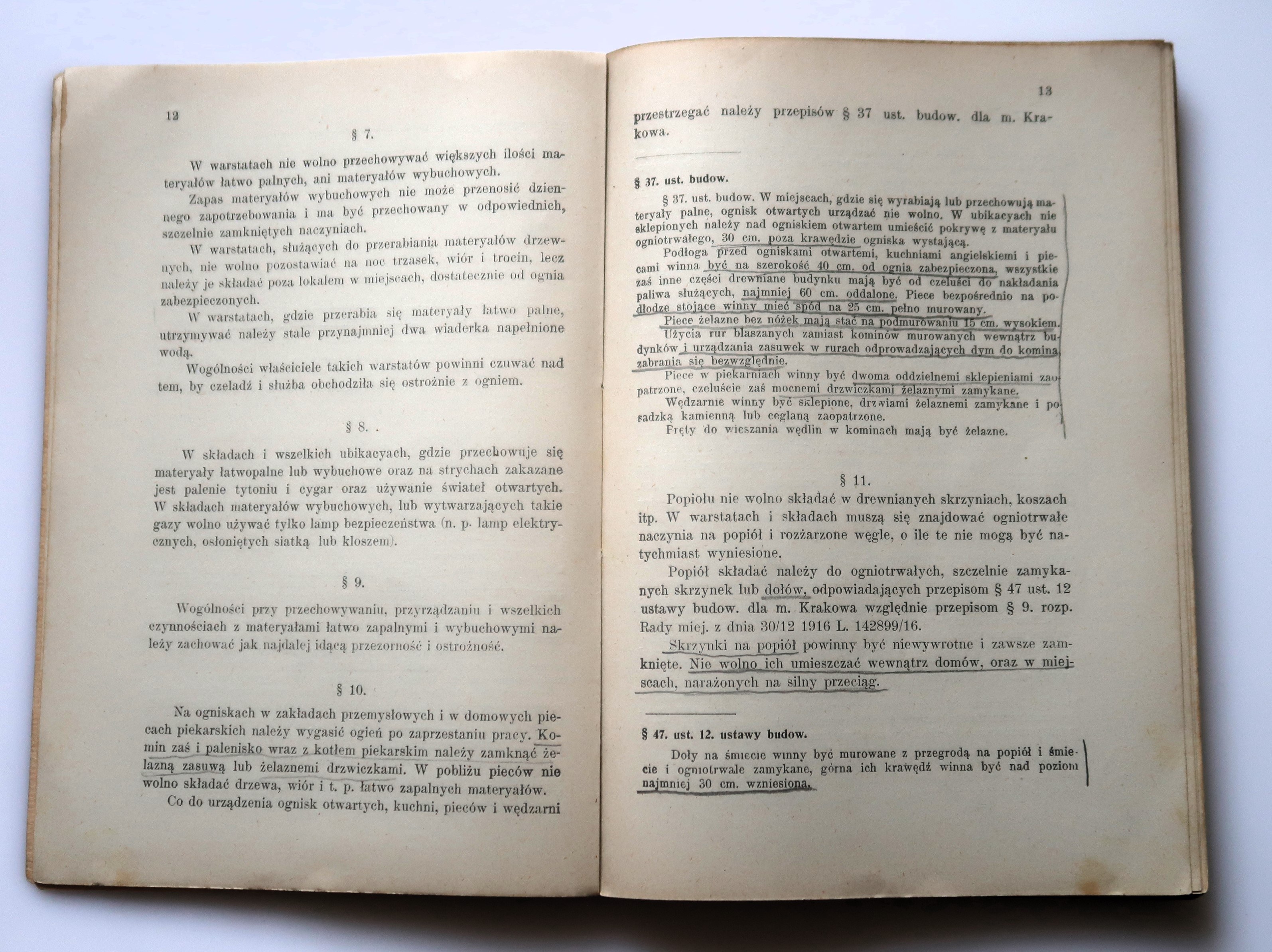 Z Dziennika Rozporządzeń: "Rada miejska uchwałą z dnia 11 lipca b. r. zatwierdziła nowy regulamin ogniowy dla stoł. król. miasta Krakowa. — Regulamin ten wchodzi w życie w 6 miesięcy od dnia ogłoszenia, równocześnie zaś tracą moc obowiązującą inne przepisy i rozporządzenia Magistratu, normujące przedmioty objęte tym regulaminem, a w szczególności t. zw. ustawa ogniowa dla miasta Krakowa z dnia 6 lutego 1855 r. L. 14206. Nad przestrzeganiem przepisów nowego regulaminu czuwać będą organa miejskie i Dyrekcyi Policyi oraz majstrowie kominiarscy. Przekraczający przepisy regulaminu karani będą w myśl postanowień § 60 ust. 30 statutu gminnego przez Magistrat karą pieniężną aż do wysokości 200 K lub w razie niemożności uiszczenia kary pieniężnej aresztem do 20 dni, o ile przewinienia te nie podpadają ukaraniu w myśl przepisów powszechnej ustawy karnej, względnie innych ustaw i rozporządzeń".