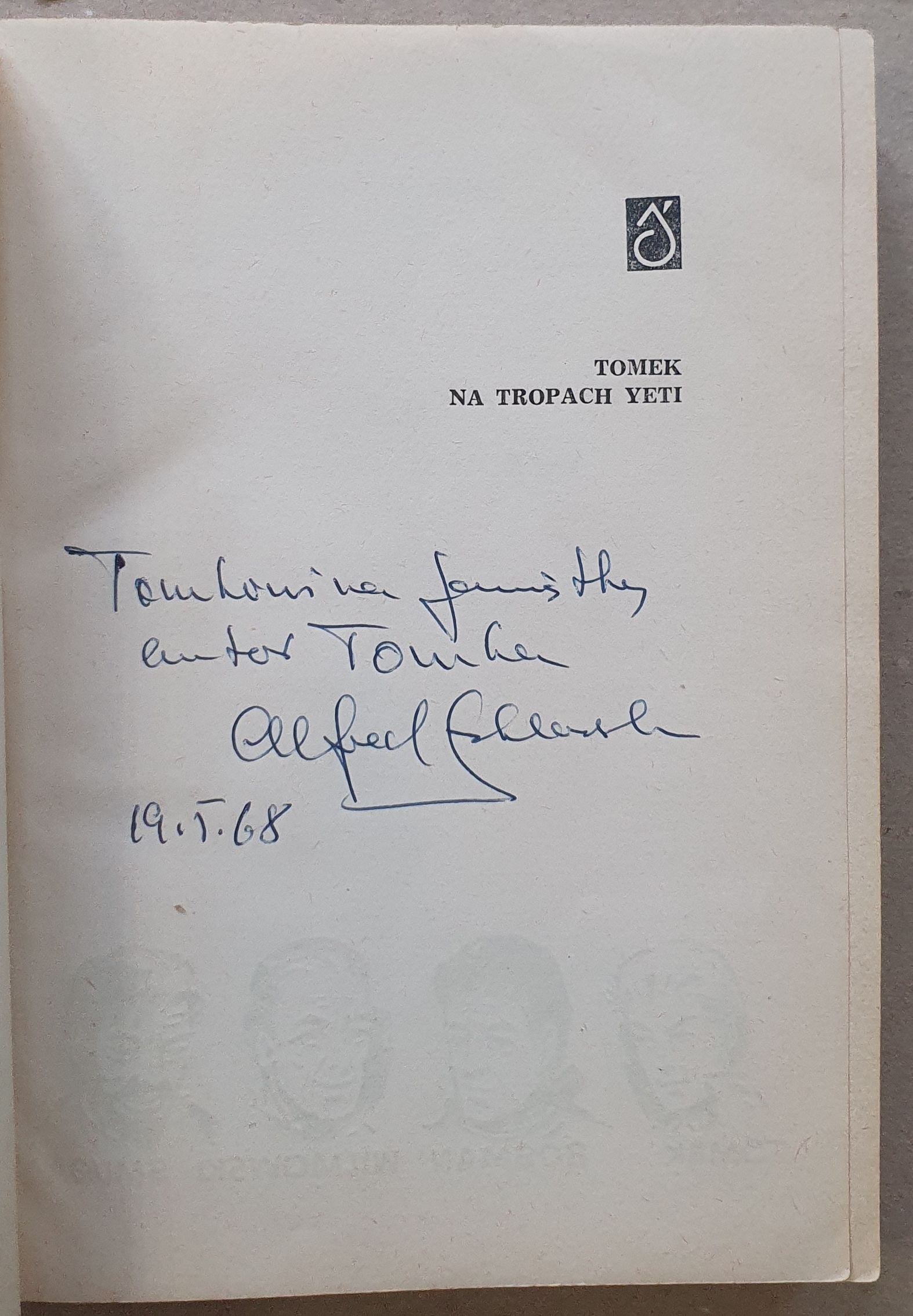 Na karcie przedtytułowej zabawna dedykacja: Tomkowi na pamiątkę autor Tomka Alfred Szklarski. 19.5.1968.
