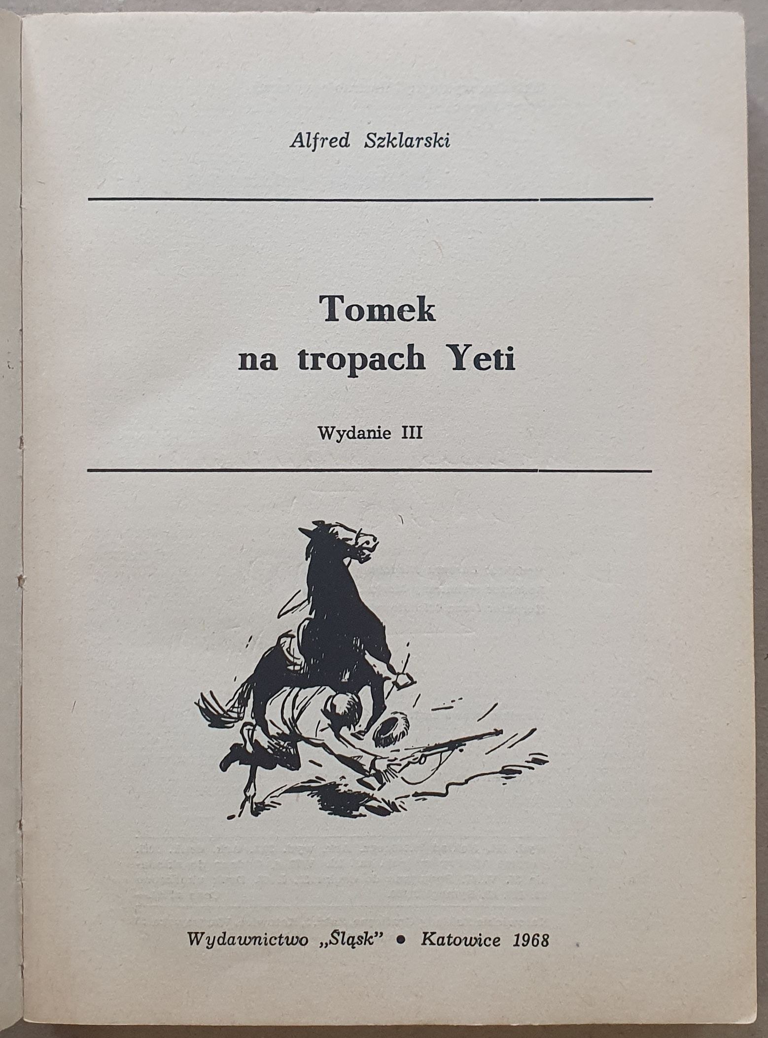 Alfred Szklarski - Tomek na tropach Yeti. Okładkę, wyklejkę i ilustracje wykonał Józef Marek. Katowice: Wydawnictwo „Śląsk”, 1968. Wydanie 3.