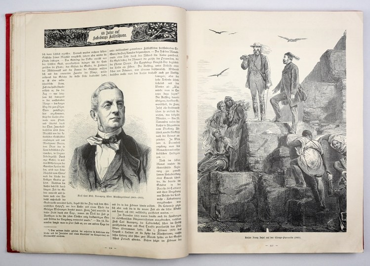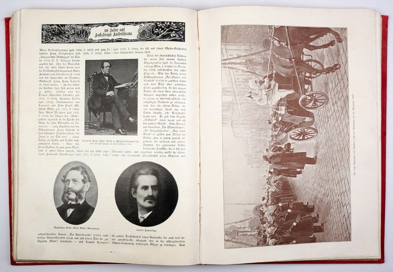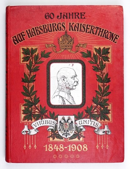 Okładki otarte i zabrudzone, miejscami niewielkie zabrudzenia wewnątrz, poza tym stan dobry. Tytuł okładkowy: "60 Jahre auf Habsburgs Kaiserhrone - Viribus Unitis 1848-1908".