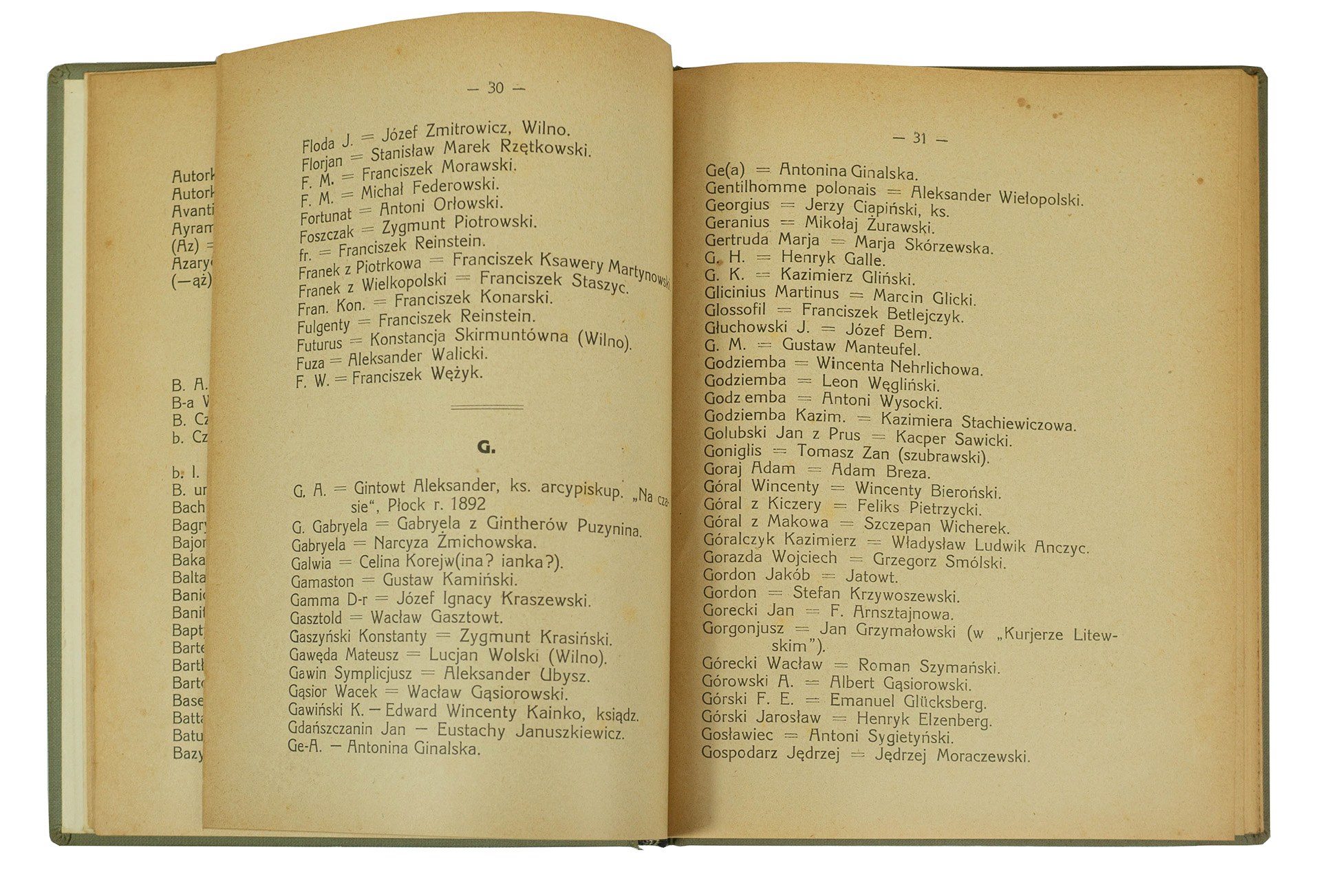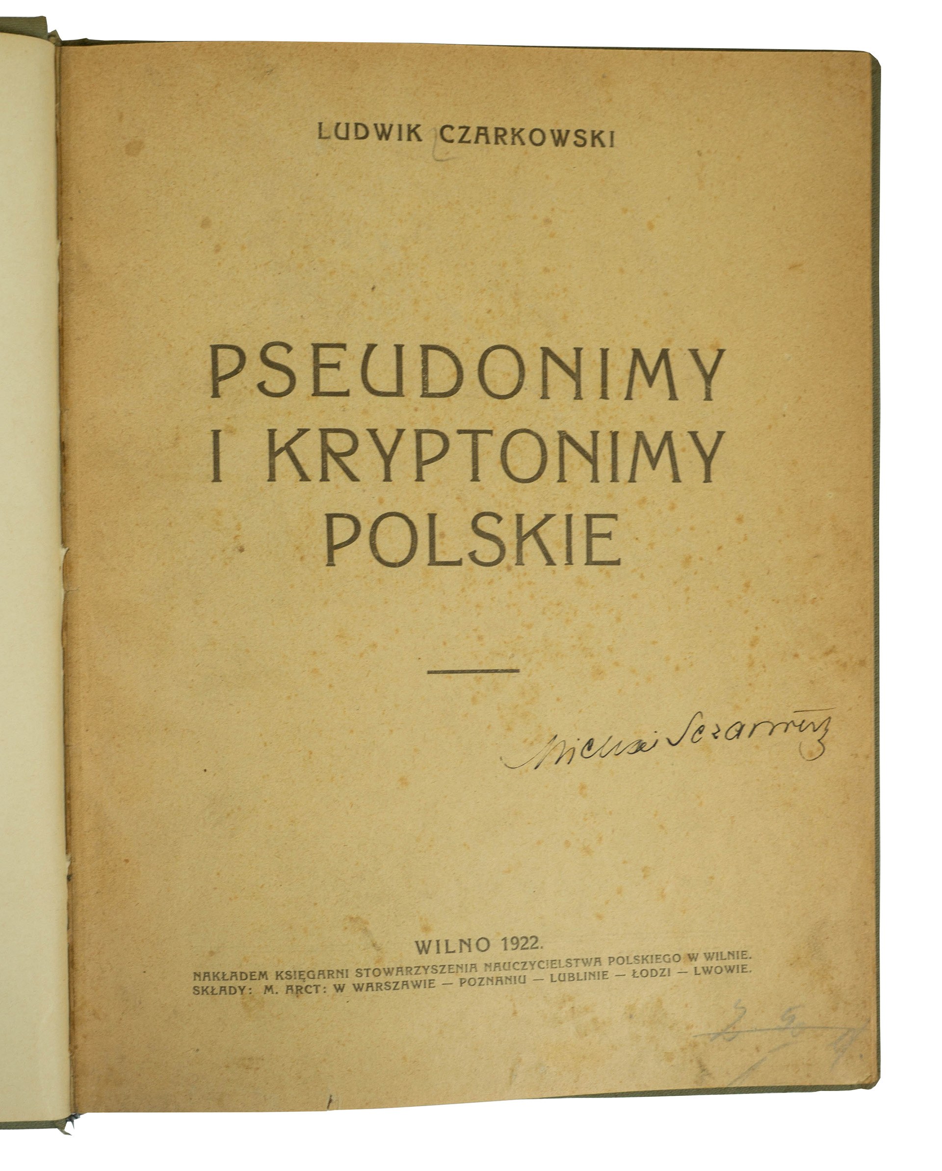 Pseudonimy i kryptonimy polskie - Ludwik Czarkowski, Wilno 1922r., nakładem księgarni Stowarzyszenia Nauczycielstwa Polskiego w Wilnie, f. 16 x 20,5cm, s. VII, 167