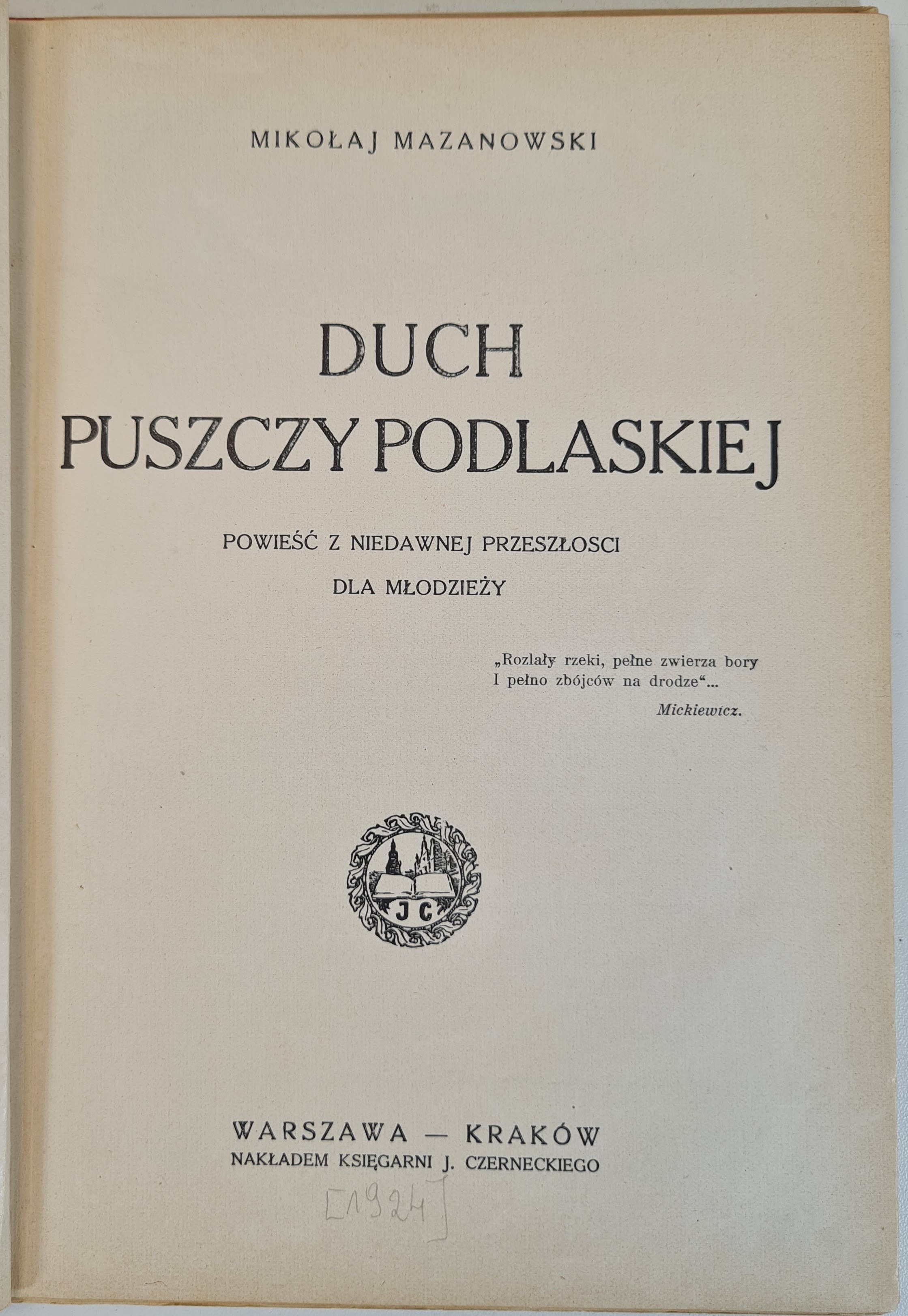 MAZANOWSKI Mikołaj - DUCH PUSZCZY PODLASKIEJ. Powieść z niedawnej przeszłości dla młodzieży