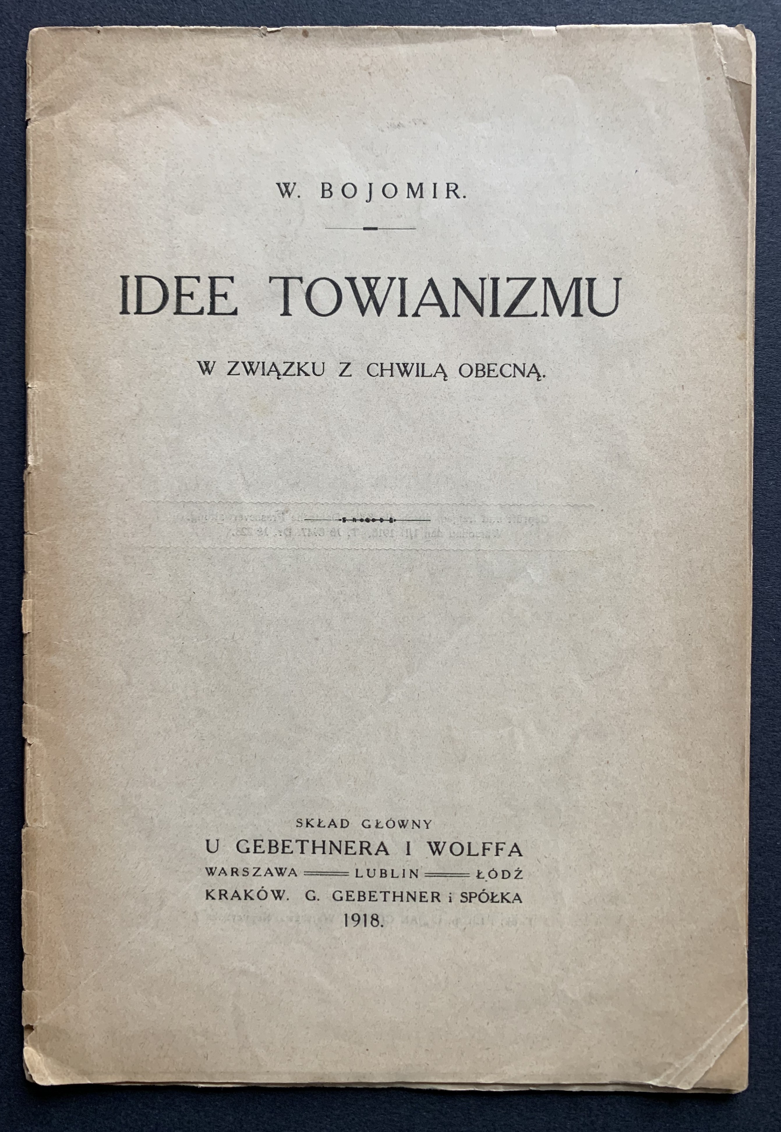 W. Bojomir - Idee towianizmu w związku z chwilą obecną. Warszawa-Lublin-Łódź-Kraków 1918, G. Gebethner i Spółka.