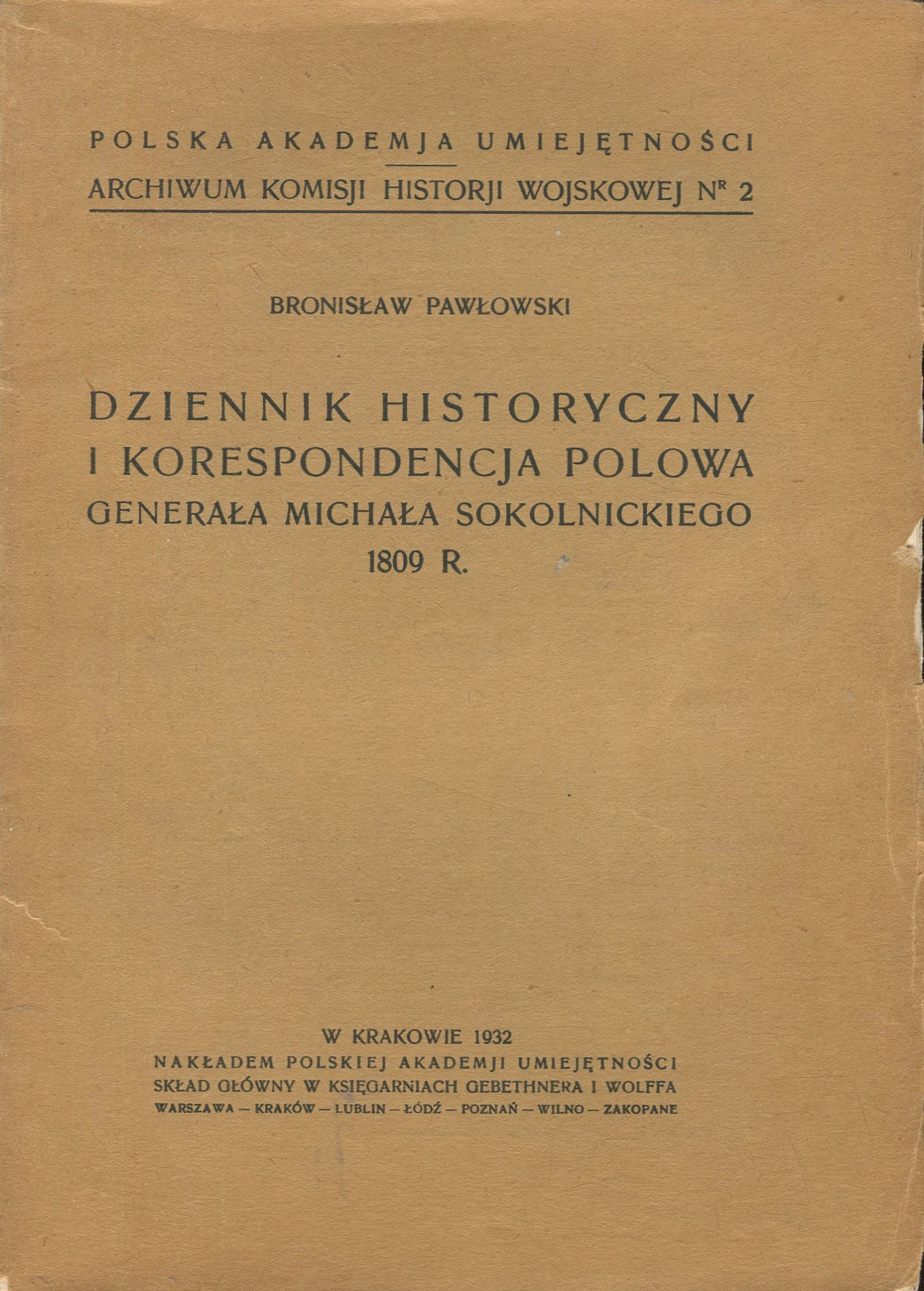 Dziennik historyczny i korespondencja polowa z kampanii 1809 r. Michała Sokolnickiego (1760-1816), generała wojsk polskich, inżyniera wojskowego, polityka i autora prac naukowych z dziedziny techniki. W 1808 został generałem brygady Księstwa Warszawskiego, a rok później - generałem dywizji. Walczył m.in. pod Raszynem i Sandomierzem, a jego zwycięstwo pod Górą Kalwarią miało duże znaczenie dla dalszego przebiegu wojny. Otrzymał od Napoleona Krzyż Oficerski Legii Honorowej i Krzyż Komandorski Virtuti Militari.