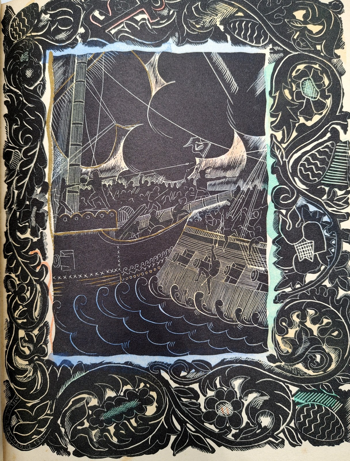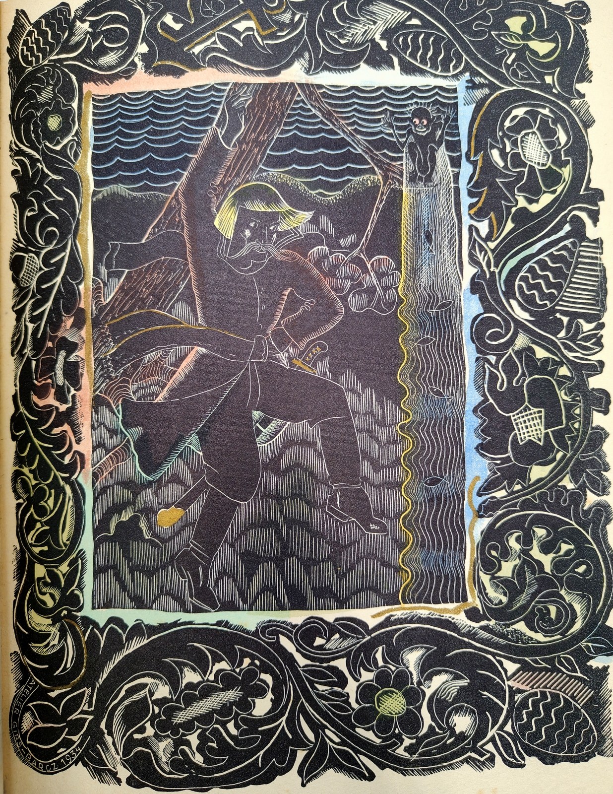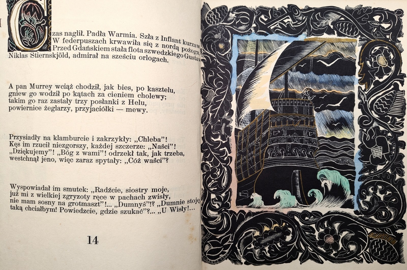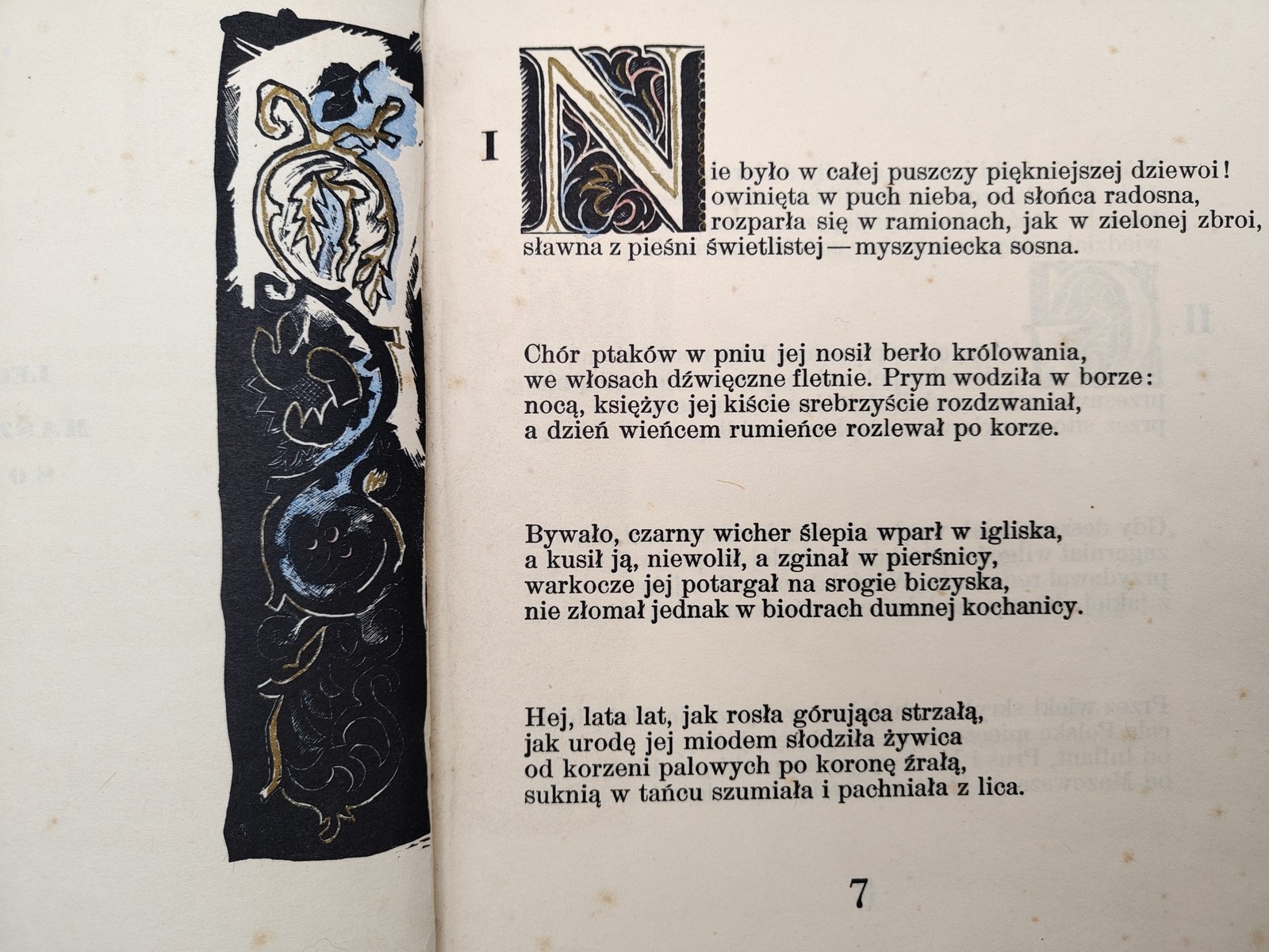 Opracowanie graf. Atelier Girs - Barcz, w tekście cztery całostronicowe ręcznie kolorowane drzeworyty, inicjały, przerywniki.