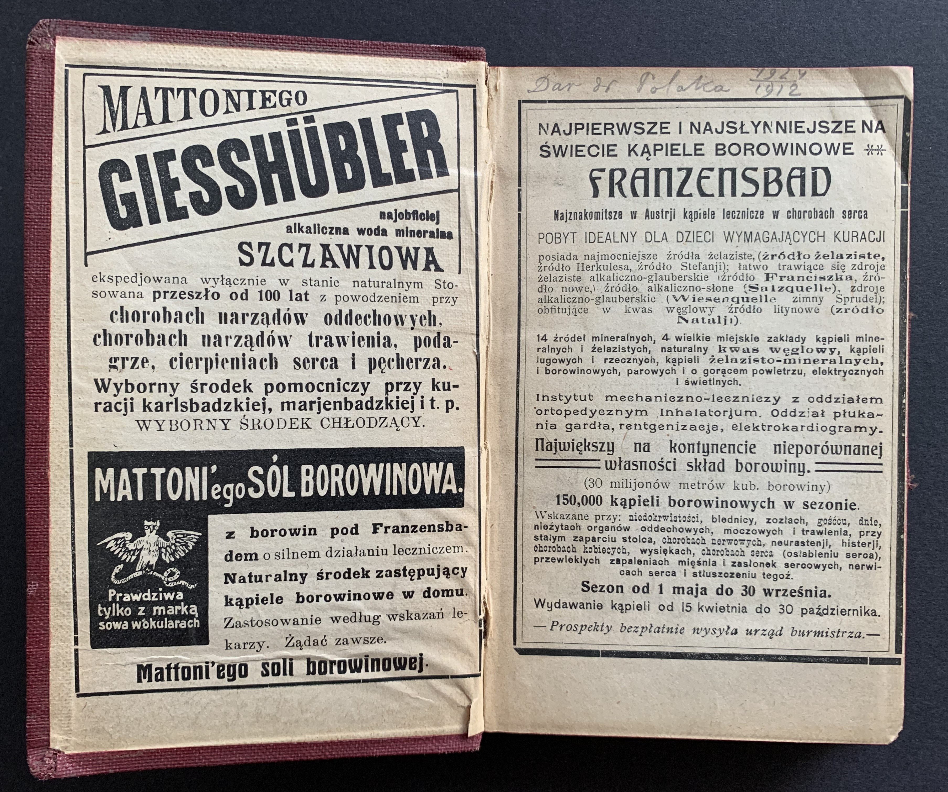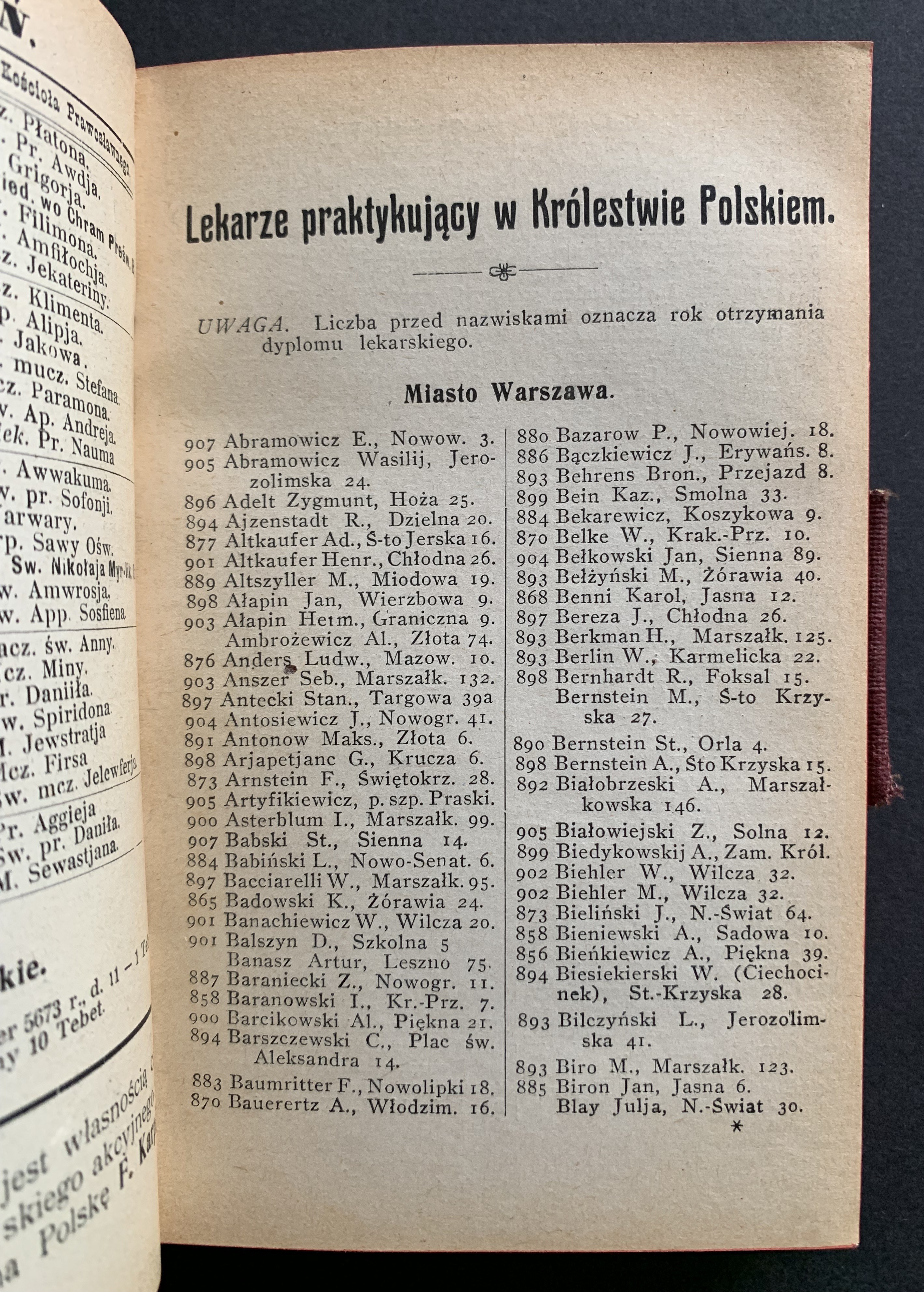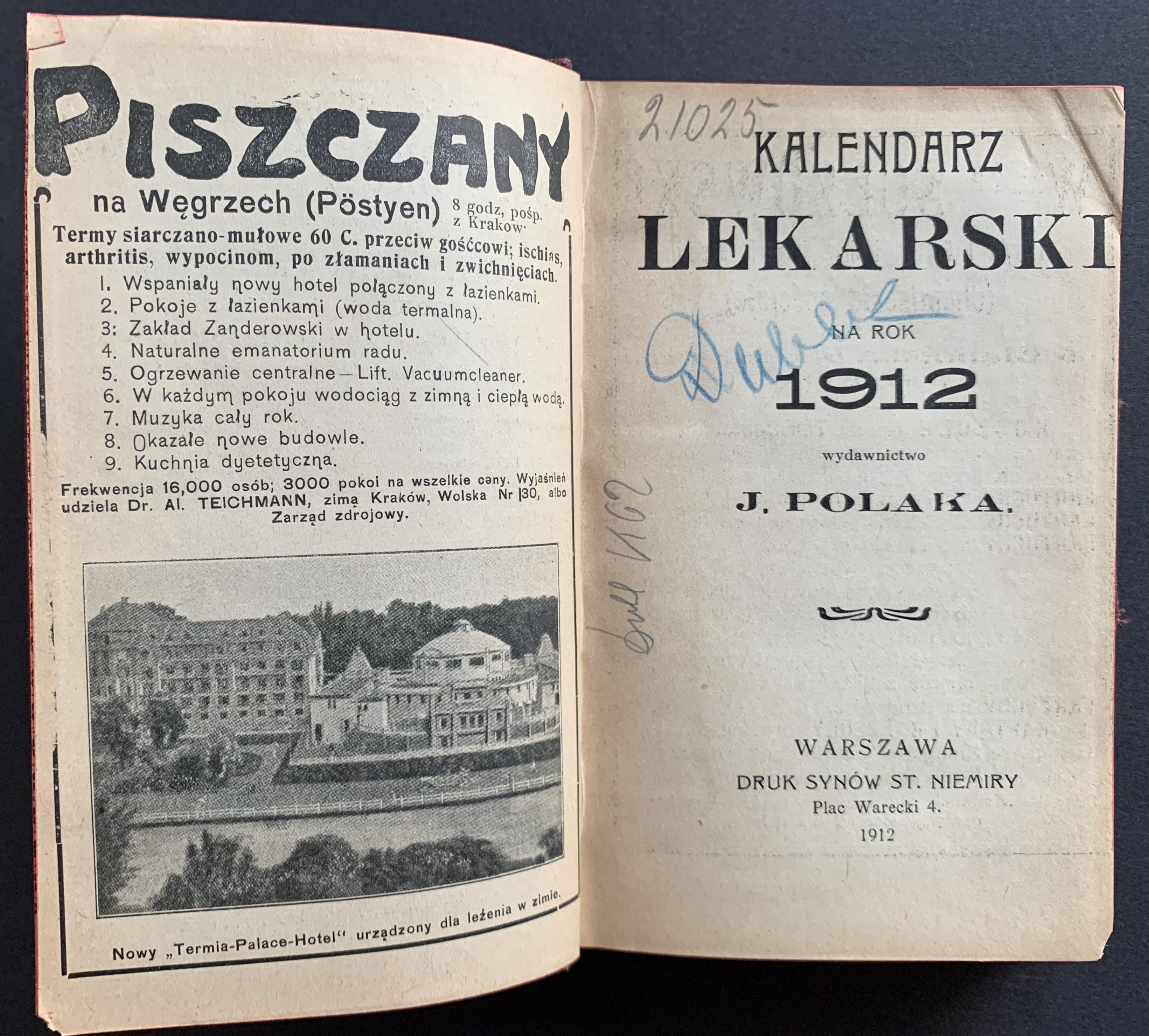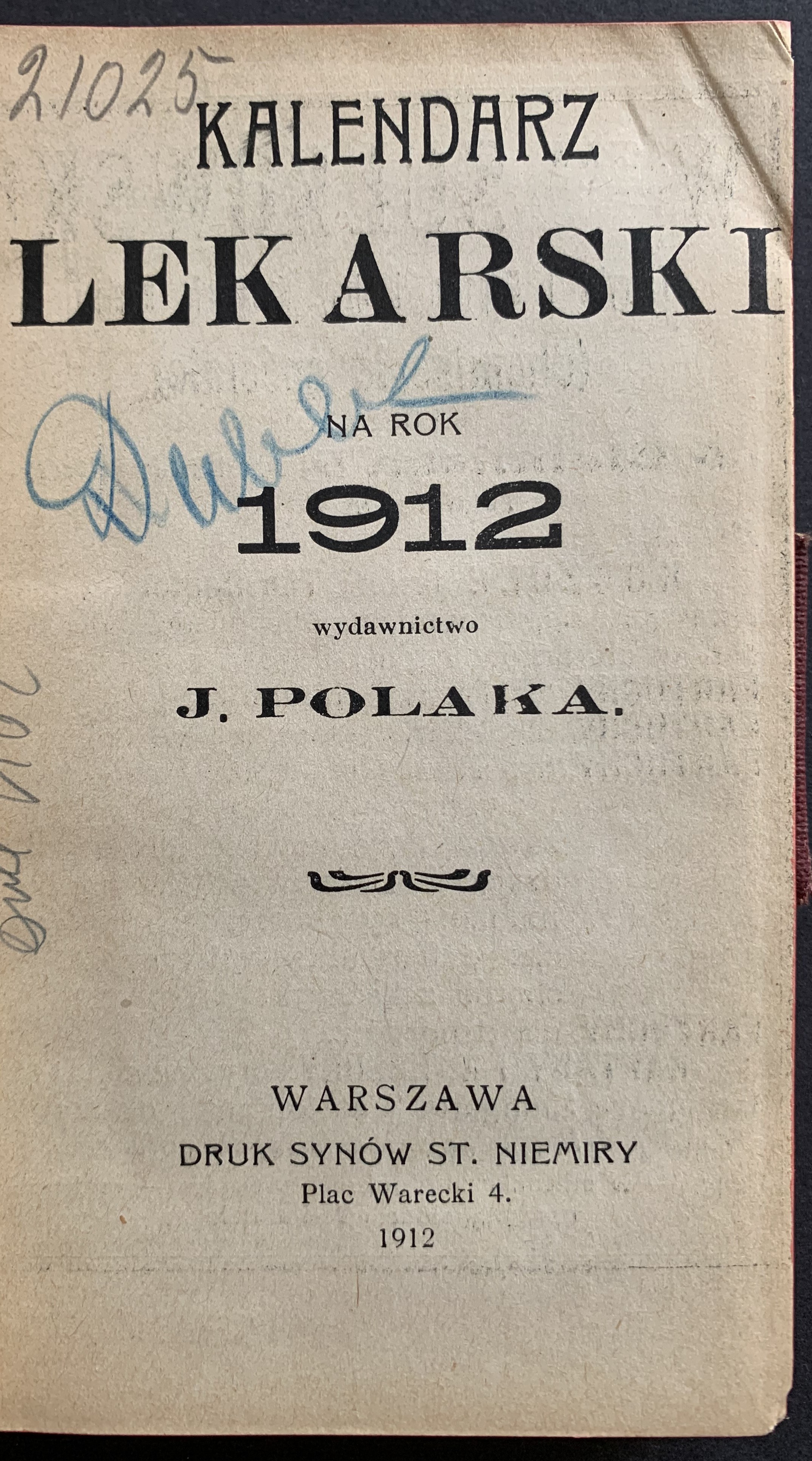 Kalendarz Lekarski. Wydawnictwo Dr. J. POLAKA Warszawa. 1912.