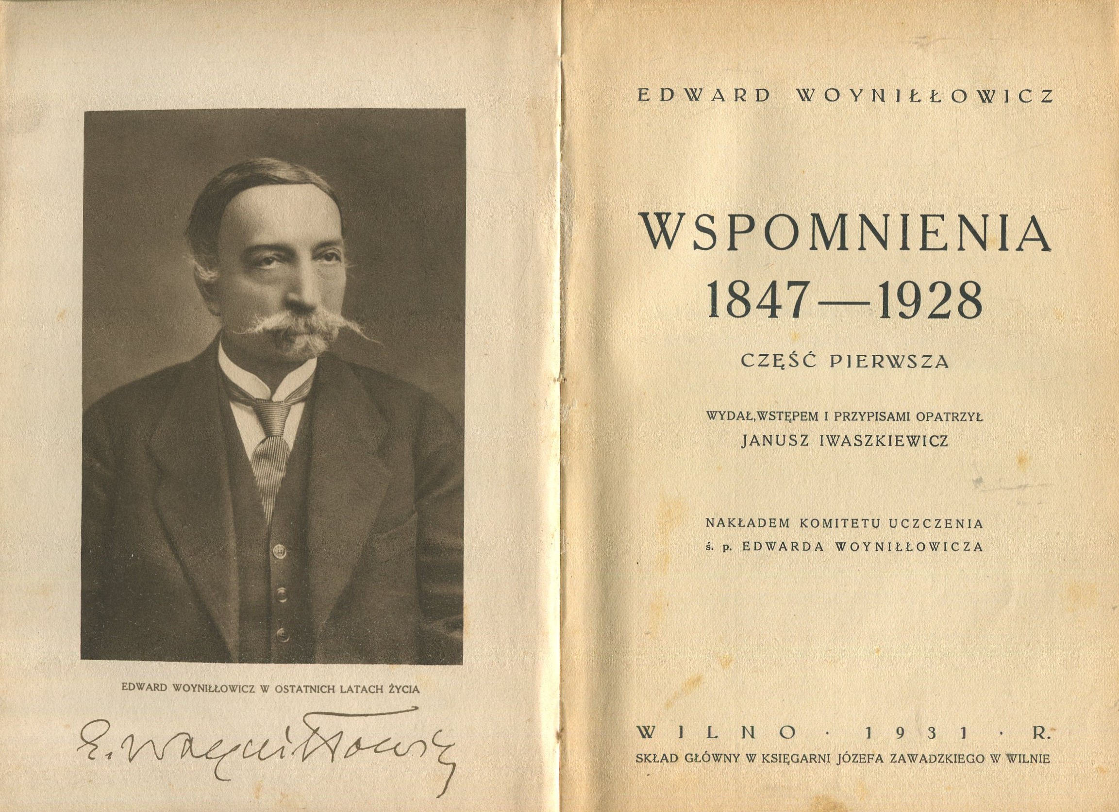 Wilno 1931. Nakładem Komitetu Uczczenia śp. Edwarda Woyniłłowicza. 15x23 cm, str. XXIV, 365, (2), fotografie w sepii na oddzielnych kartach, półpłócienna oprawa introligatorska. Stan dobry (niewielkie rdzawe zaplamienia części stron, otarcia i przybrudzenia oprawy).