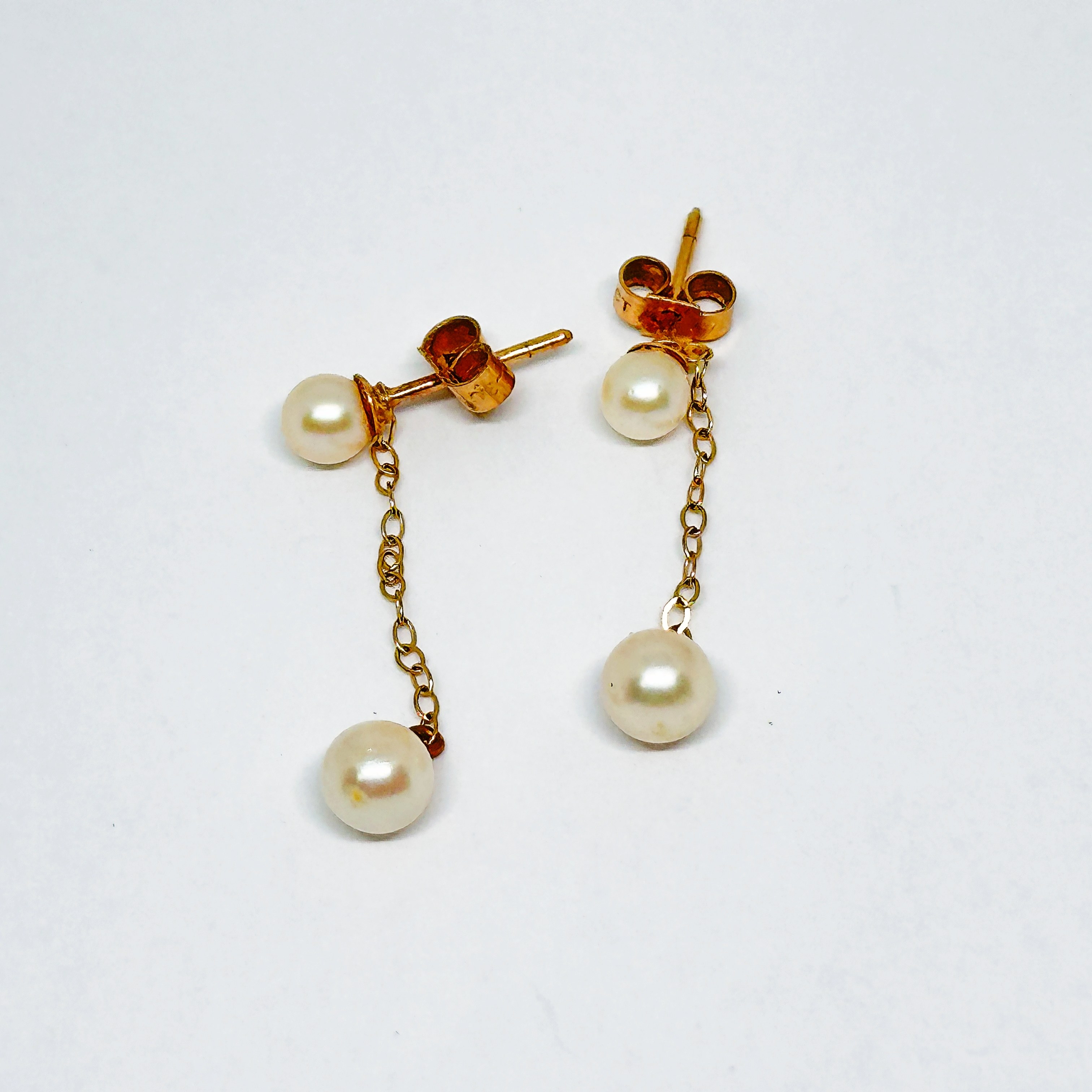 Złote 375/9K wiszące kolczyki z perłami Akoya, sztyft