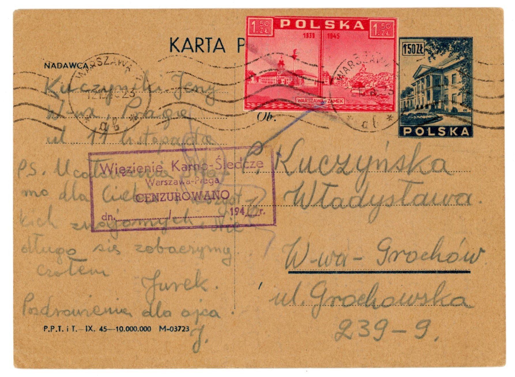 Karta pocztowa z października 1946 roku. Więzienie karno-śledcze nr III w Warszawie, zwyczajowo zwane Toledo – więzienie Urzędu Bezpieczeństwa i NKWD przeznaczone dla żołnierzy Armii Krajowej, Narodowych Sił Zbrojnych oraz innych organizacji podziemnych, działające w latach 1944–1956 na warszawskiej Pradze-Północ.