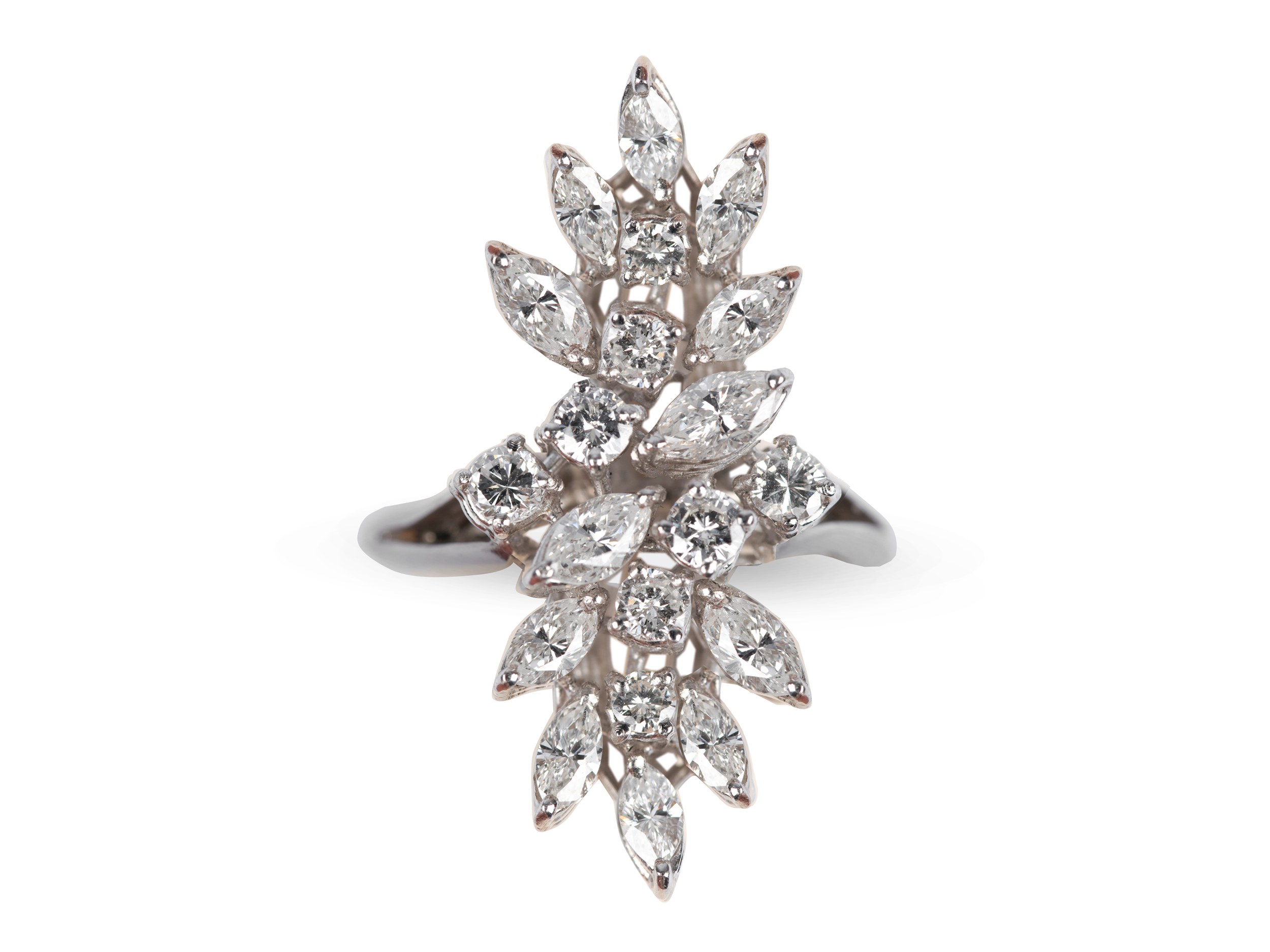 Set with 12 navette-cut diamonds (3 of which are faux) and 8 brilliant-cut diamonds (2 of which are faux)