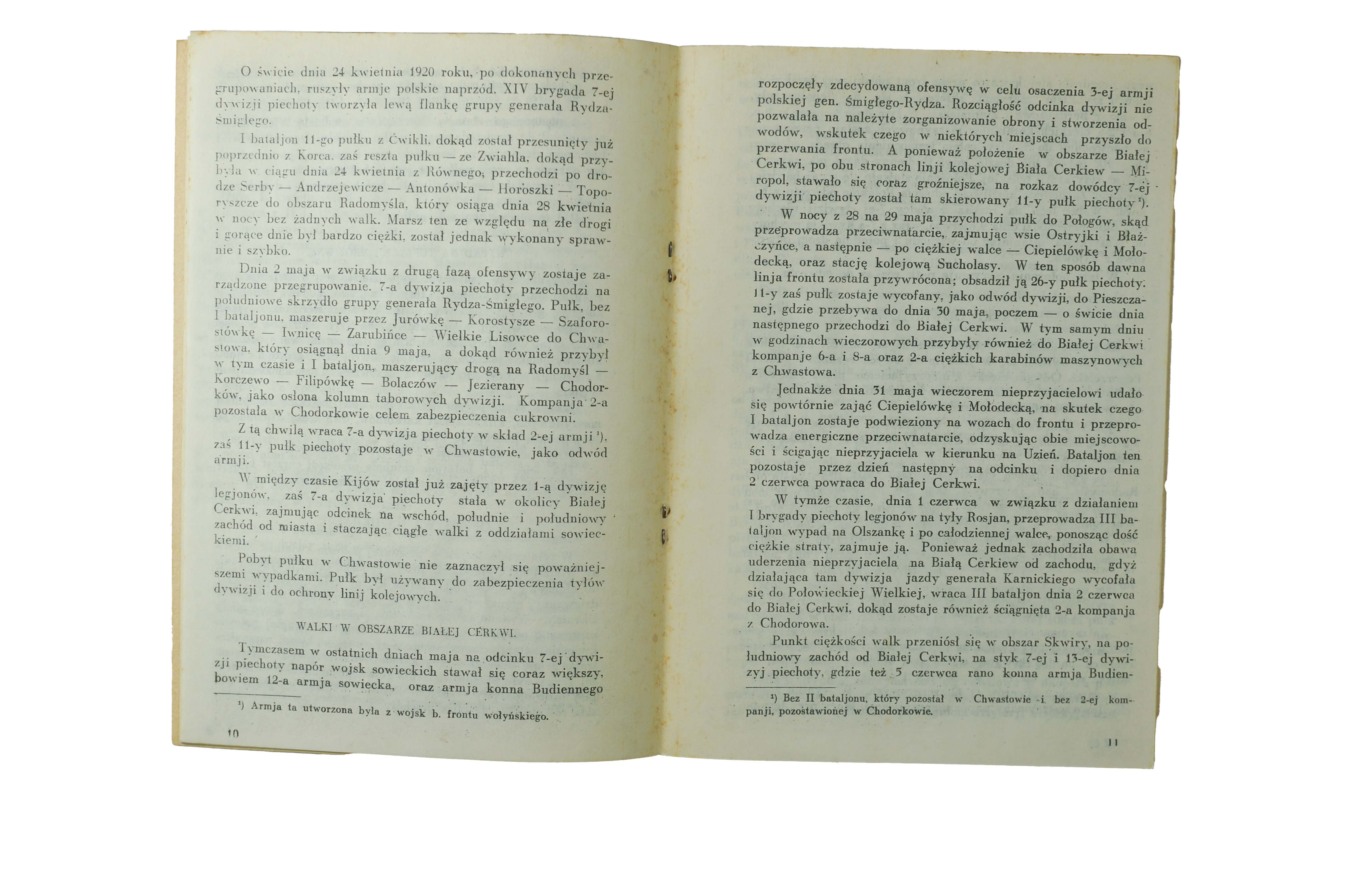 Zarys historii wojennej 11-go Pułku Piechoty z polecenia Wojskowego Biura Historycznego opracował major Roman Knauer, f. 15x21cm, s. 19