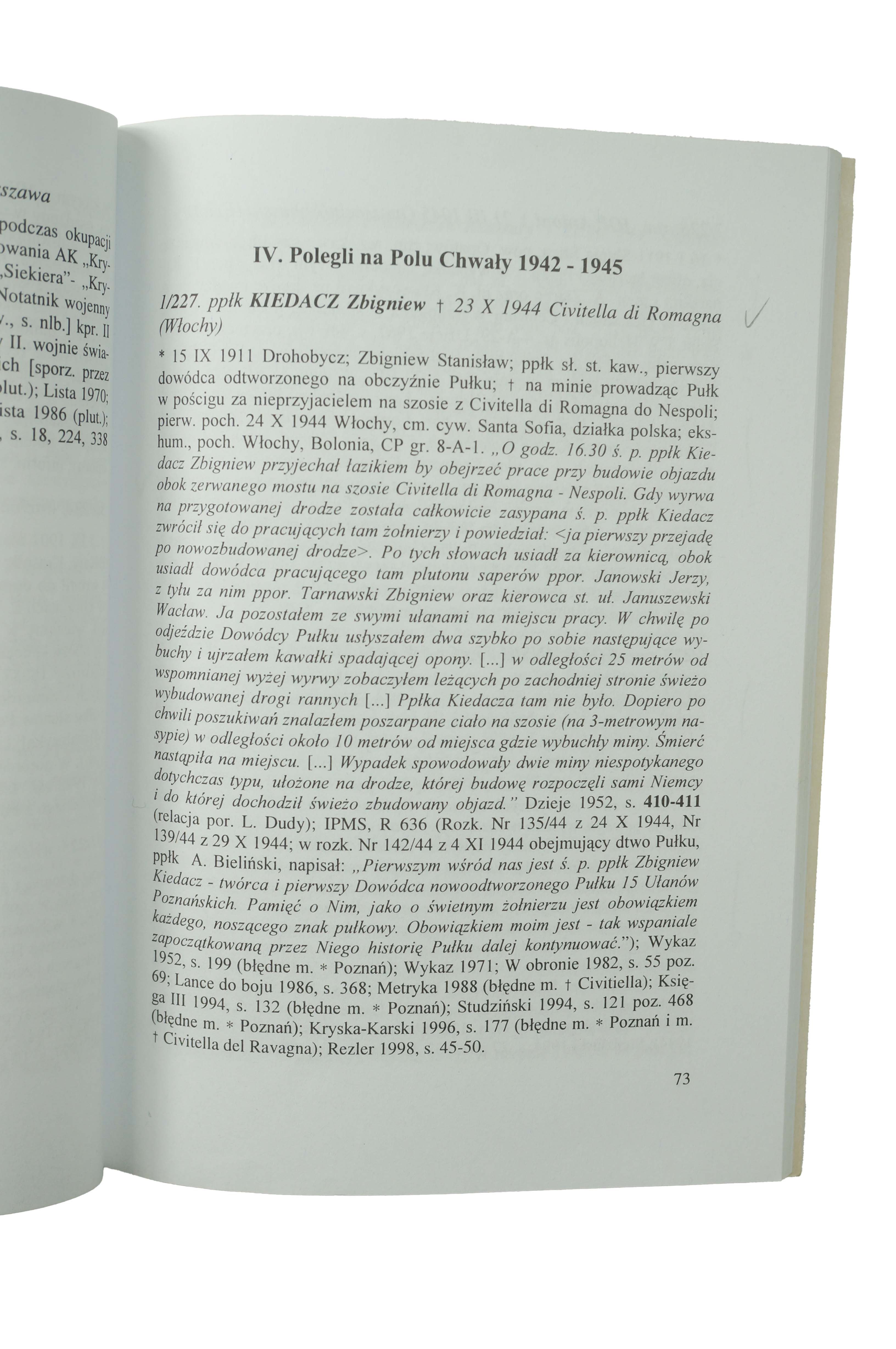 3. "Dowódcy 15 Pułku Ułanów Poznańskich" - Marek Rezler , Zeszyty Historyczne Towarzystwa b. Żołnierzy i Przyjaciół 15 Pułku Ułanów Poznańskich, zeszyt 3, Poznań 1998, f. 15x20,5cm, s. 62