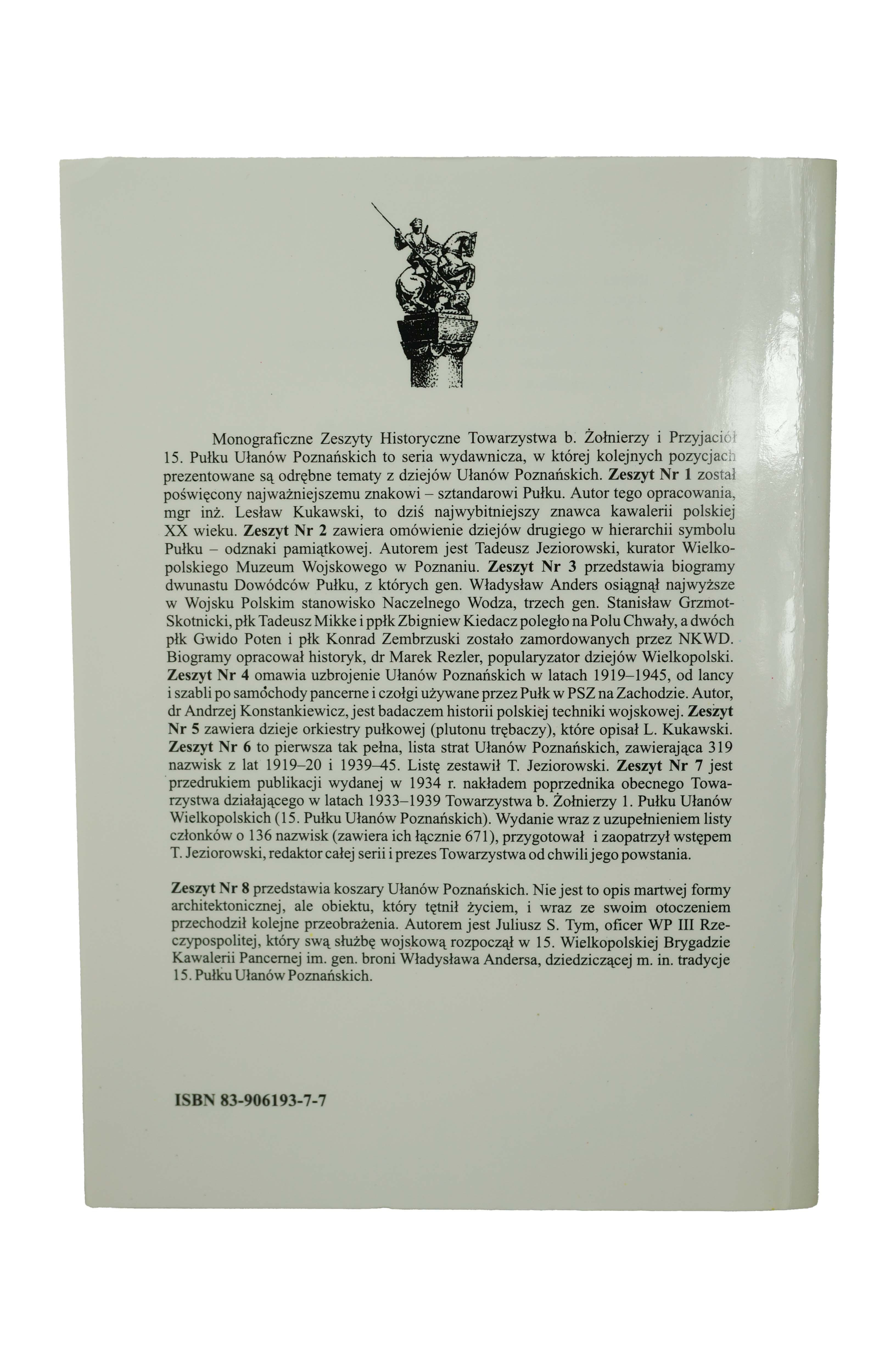 5. "Listra strat 15 Pułku Ułanów Poznańskich" - Tadeusz Jeziorowski, Zeszyty Historyczne Towarzystwa b. Żołnierzy i Przyjaciół 15 Pułku Ułanów Poznańskich, zeszyt 6, Poznań 1999, f. 15x20,5cm, s. 128