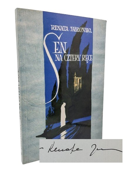 Renata Jabłońska – Sen na cztery ręce Opowiadania, Wydawnictwo Cis, 1995 r. Imienna dedykacja od autorki na stronie przedtytułowej