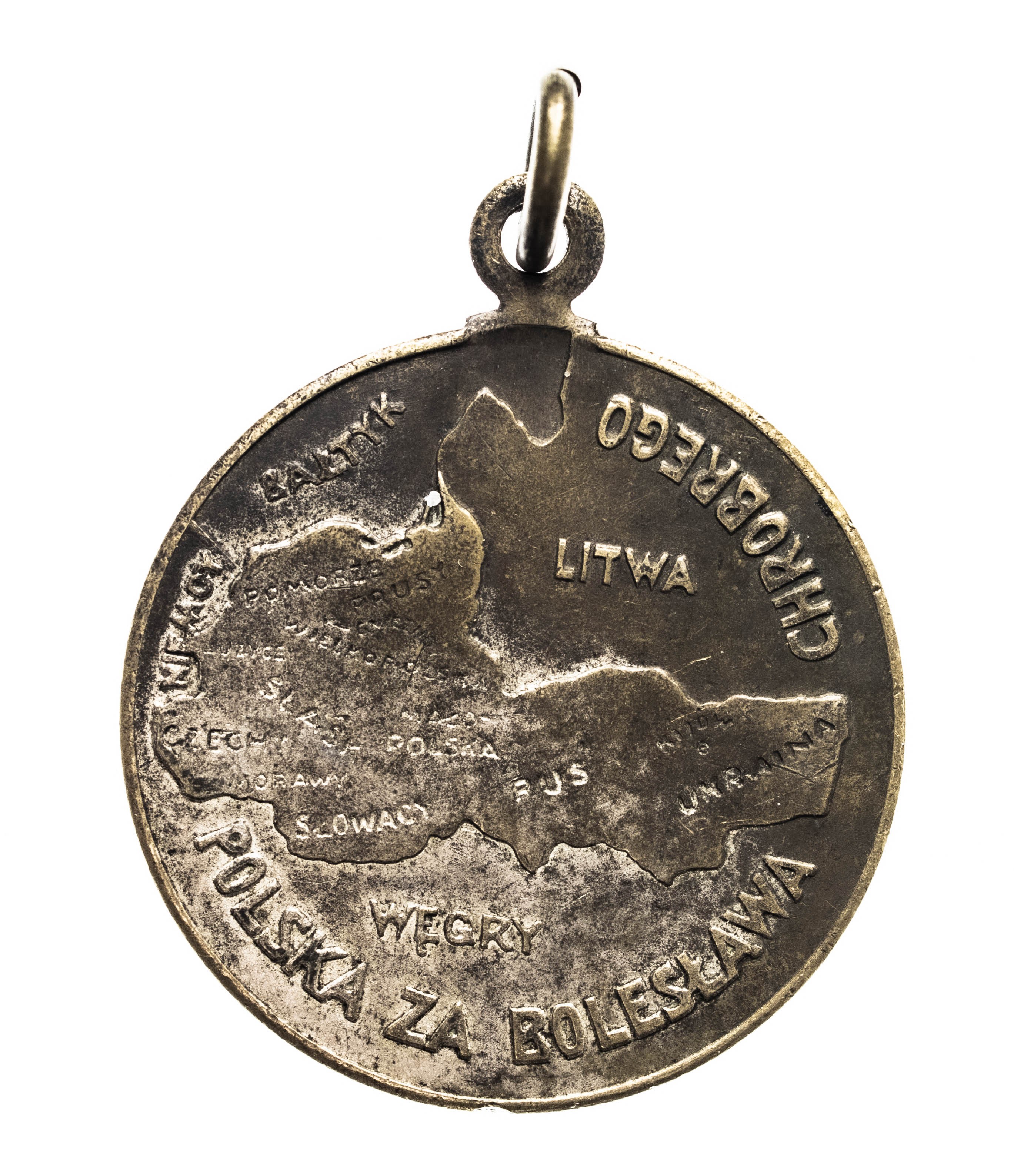 Rw: Mapa polski i krajów sąsiedzkich, wokoło napis POLSKA ZA BOLESŁAWA
