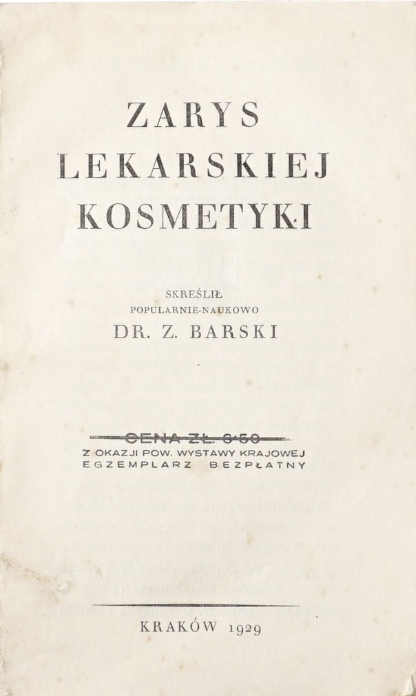 Zarys lekarskiej kosmetyki / skreślił popularnie-naukowo Z. Barski.